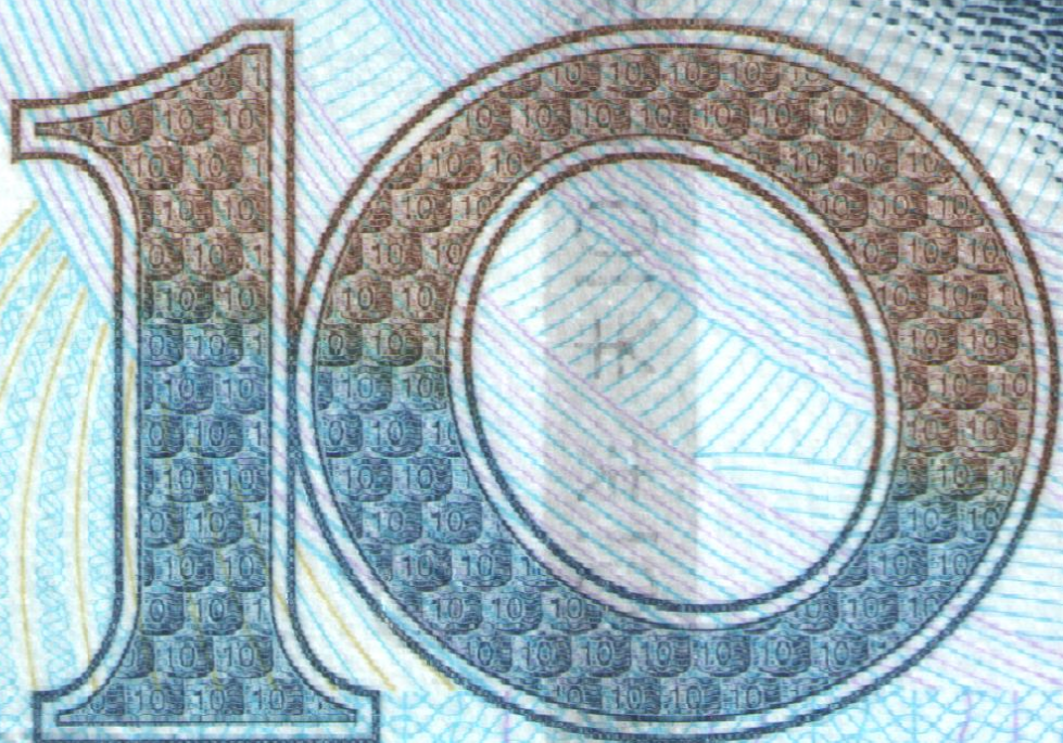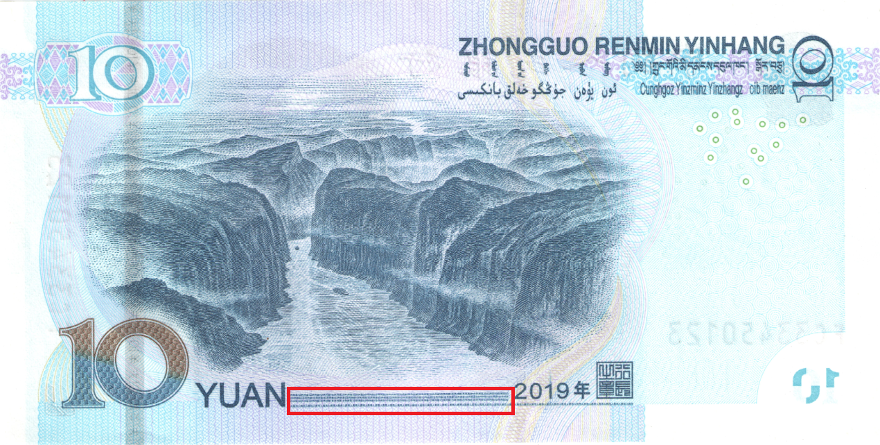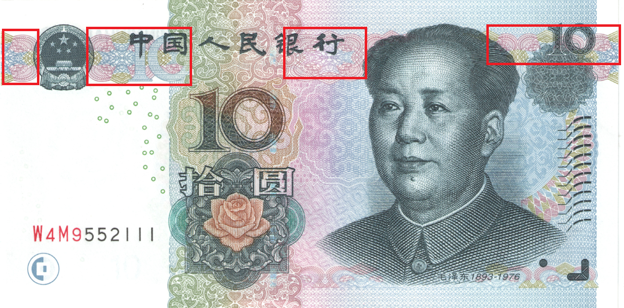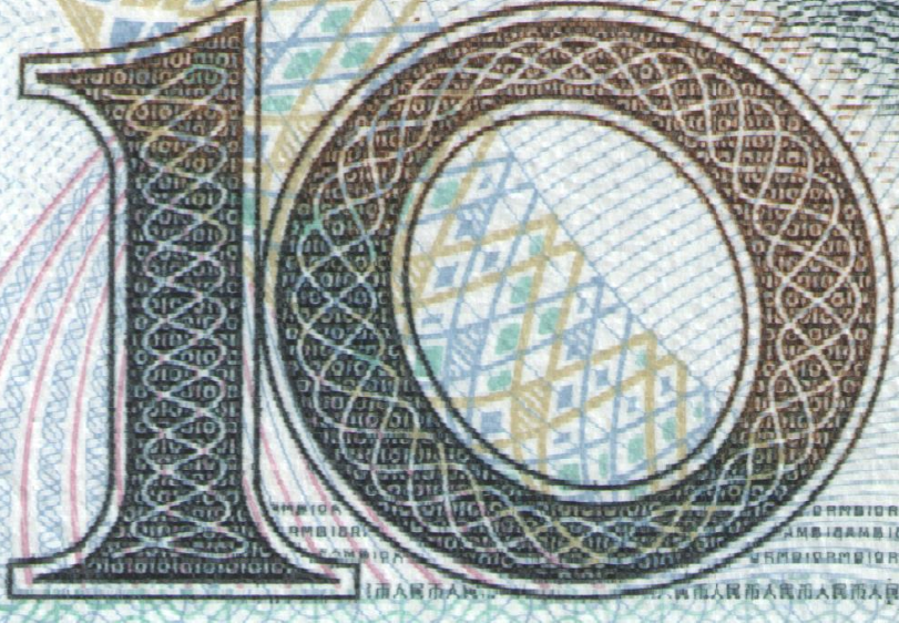 暗纹,荧光变换角度,可见RMB10