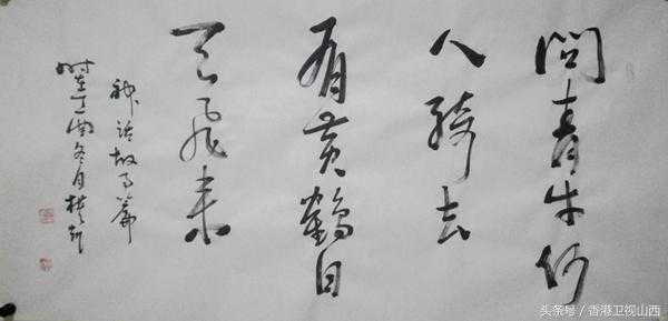 书法艺术是中华民族所特有的艺术方式。书法培育了中国文化艺术追求内在美、中和美、自然美的审美观,是中国传统文化艺术的基石,是传播文明的载体,培育了中国人独特的文化价值观和审美情趣。这幅《枫桥夜泊/夜泊枫江》,是唐代张继的名篇。书法家用笔洒脱,自然流畅,作品的视觉效果非常突出。“月落乌啼霜满天,江枫渔火对愁眠。姑苏城外寒山寺,夜半钟声到客船。”这幅书法作品横涂竖抹,标新立异,与原诗词内容相辅相成,给人以一种全新的审美意境。作品的墨色随用笔的变化而变化,给观赏者以视觉上的调节,使人感到笔墨被赋予了生命,生机盎然,达到了尽性尽理,璀璨夺目的艺术境界。