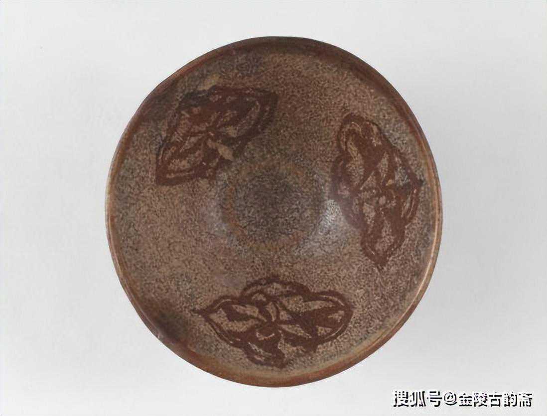 在吉州窑的黑釉系列产品中,除了闪闪亮惹人爱的兔毫之外,尤以剪纸贴花、木叶盏和玳瑁釉最具地方特色。这其中剪纸贴花是最能反映宋代民间的审美意趣,同时也是将工艺美术中的实用价值和审美价值完美融合的典范。由于饮茶文化的差异性致使吉州窑剪纸贴花茶盏形制丰富多样,而吉州窑又是民窑,其装饰风格也是多种多样令人为之迷乱。