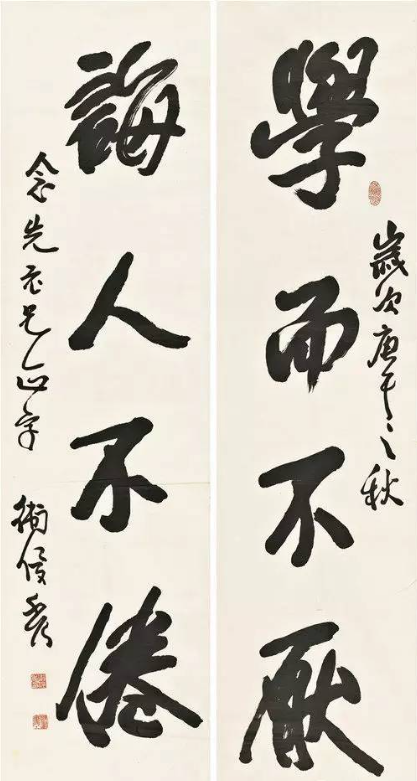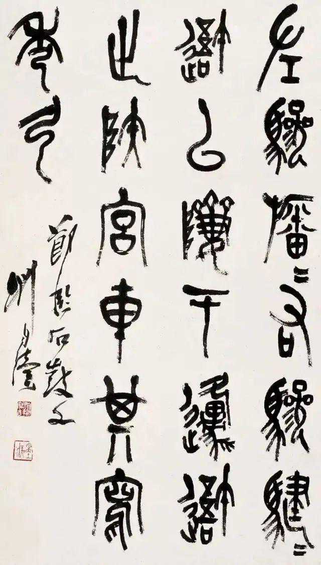 他最喜傅山书法,注意从中汲取气势连贯、奔放自如的襟度,又认识到傅山书法过分盘曲、“劲节”不足的弱点,择其精华,化为我用,独创自己风貌。