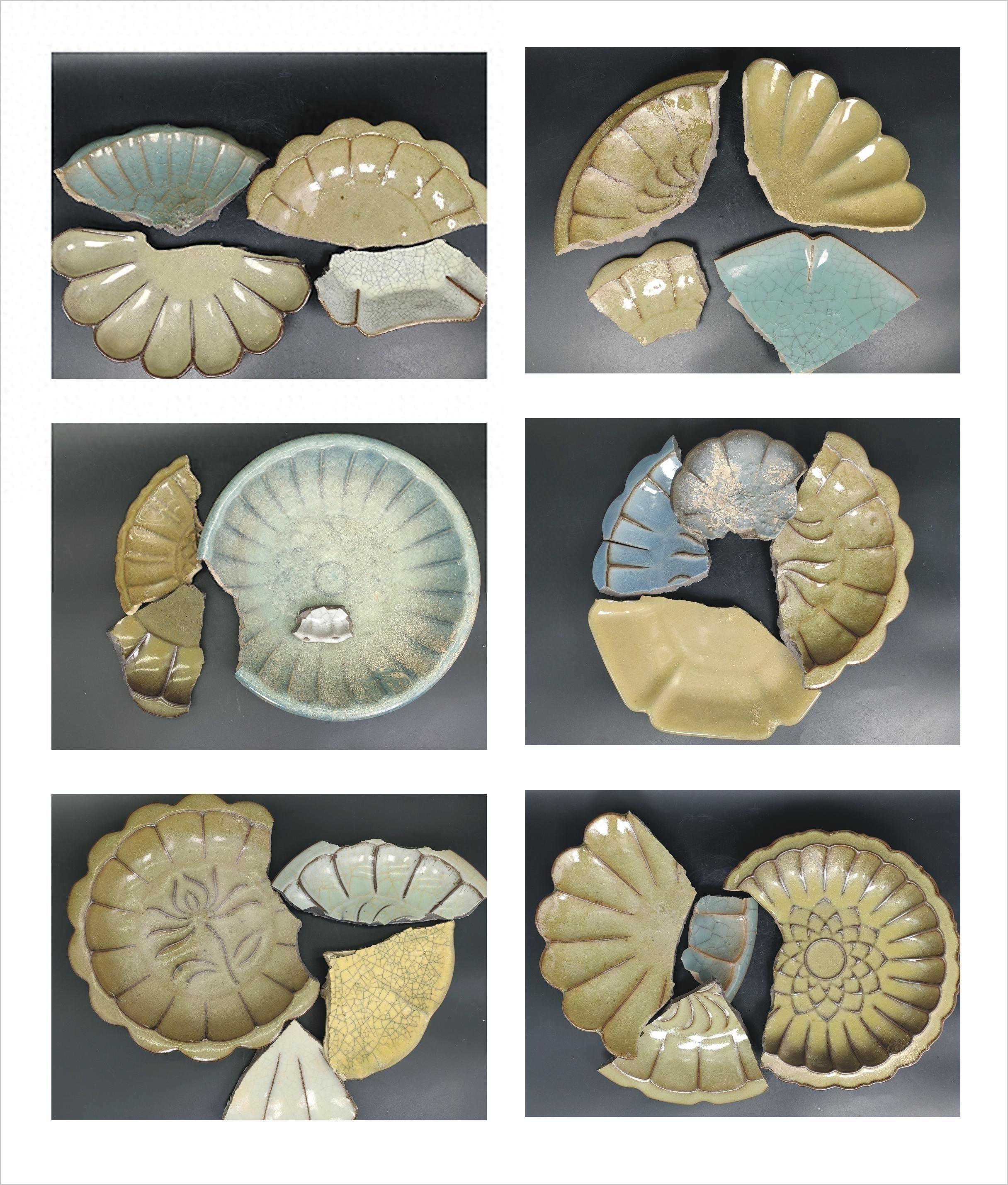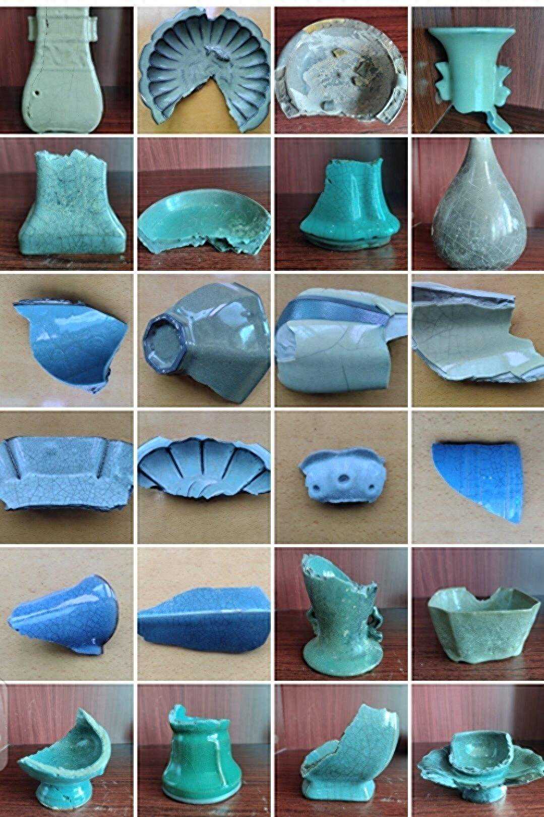 笔者偶得一批疑似北宋末至金代初的官窑残器;从器形上看,器形端庄典雅而有灵性;紫口铁足特征明显,釉面土蚀较重;用紫光照射釉面附着物,无萤光反映;釉面在折射光下未见有做旧的痕迹;很多器表如有一层浮蜡,很难清洗掉;经特殊清洗后,可见釉面宝光凝聚、莹润柔和;器形大小、高矮、型制比例十分协调,大有多一分嫌胖,少一分嫌瘦之感;器形、大小各不相同,手工制作特征明显;共有好几十种釉色,有近十种颜色的变色气泡,有的同一个变色气泡内就有两种以上的颜色,有的在同一个瓷器内有两种以上颜色的沁污气泡,这种现象应是难仿、不可仿的;大开片与小开片均有,以小开片为主,片纹弯曲,呈多次开片;胎色有黑褐色、灰褐色、灰色、香灰色等多色,有的同一器物内有不同的胎色,且胎色有渐变过渡,底部无支钉。具体特征详见宋代官窑瓷器浅探(补续)