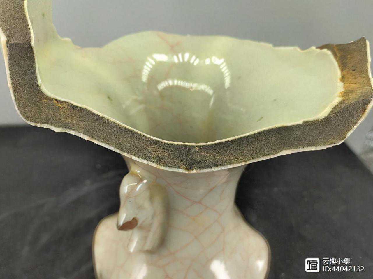 今天所要展示是一件宋官窑鳝血纹花口瓶残器。