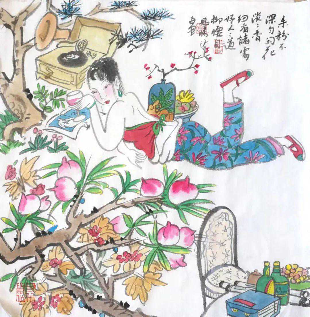 他水墨画创作的重点倾向于民国三十年间的侍女,我想不外乎这些侍女是那个时代的代表,也是女性审美的一个高度的时代,或多或少的凸显了中国元素的典型代言,一旦一个时代的标志性产物有了,那么这些东西就是时代的瑰宝和时代的印痕,不会也无法磨灭掉。恩胜兄截取了一个时代的片段进行再创作,这里面就有了新的奇特的魅力。一睹他的《美丰伊人如三春杨柳侍女图》四条屏,立刻一股清新画风席卷而来,带着胭脂的香味和女性的柔情,画境中呈现出阴柔之美,也透露出了妩媚风情,艳丽、淡雅、清风、水质涵盖其中,线条的柔顺,色彩的柔和,气态的温善,魂情的贯穿,都恰如其分的在每一个细节中张扬出来,使得简洁而落落大方的画风通过侍女的端庄大方之气场展现的淋漓尽致,在他的画里找不到多余的东西、但又找不到还缺少什么。因为在恩胜笔下的侍女的神态表情面均有一节断肠、幽怨之情贯穿其中,也有舒心、平展之心平静透明,让你睹之很快就被带入那个神往的时代和那个干净的几乎让人清洗心灵的场地。侍女的眼睛里会自然的诉说着一段一段不为人知的故事,这种来心灵深处的勾勒,在恩胜所画侍女的唇间动如脱兔,但又欲言而止,那种神秘而传奇的交流、倾诉、倾听着什么,让你一下子走进了一个空旷而干净的灵魂空间,妩媚而不失干净,性感而不失高雅,娇柔而不失理智。画家恩胜把持到位所塑造的人物形象和心灵意境,深而易懂,很容易被睹者领会,这大概就是传神吧。