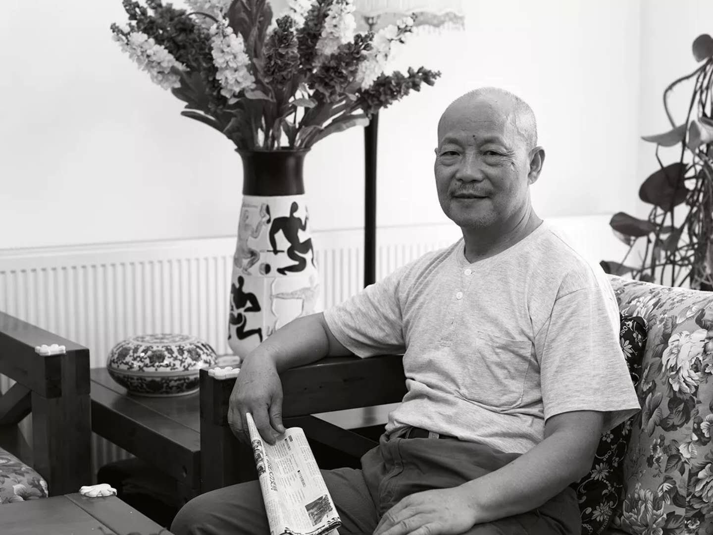 结构的改变也引起笔墨处理上的变化。如果说七丁的绘画曾经也以笔墨的深厚功底传为美谈的话,那么,那种传统意味太浓的笔墨却很难带来创造的新意。而七丁这批新作中,大气雄强的结构本身也开始排斥那种精致、疏简、清新、淡雅,以“计白当黑”为准的传统笔墨观。浓墨重笔的风貌开始呈现。七丁此时主要在一片重墨之中去重新安排墨象的变化,新作固然仍以泼墨为主,在浓淡互破,水墨互破中求变,但浓重的墨象的基调却始终保持,此时的墨色是在浓墨中的细微变化。在七丁的重墨处理中,画家巧妙地有限地引入西画对光影的表现,以对受光留白的方式在大片浓墨中留出少许透气之点,亦如围棋之留眼,一眼尚存,全盘皆活,这实则又是东方式平面构成之活用。
