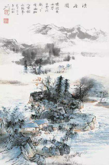 如果说传统中国画已形成一套成熟的章法结构的话,七丁的新作在此方面的突破是十分明显的。他开始打破其习惯的也是传统的以远、中、近明显三段分布而以中景为主的立轴式章法程式,或者以一景为主辅以它物,以疏简留白为主的斗方式小品结构,而出之以饱满的西方式焦点结构的新构图。他的画面,开始出现壮阔的大场景,前、中、远景被有意识地予以自然的过渡,熟悉的竖长构图被中国传统中并不多见的陌生的横式构图(但又不是“长卷”)所代替,焦点式结构的处理给他的绘画带来一种自然朴素的意味,而民族传统中“三远”式宏观观照的方法的有机纳入,又使其构图并没有落入西方式套路。这样,平易、朴实、满密、复杂的横长构图开始给七丁的绘画带来了新的意味。就是方形的结构,七丁也在写实式的焦点结构中安排得严整、方正、丰满而充实,这就与传统形态的斗方小品有了较大的区别。结构在绘画中有着举足轻重的统率作用,结构的变化造成了七丁绘画全新的视觉面貌。