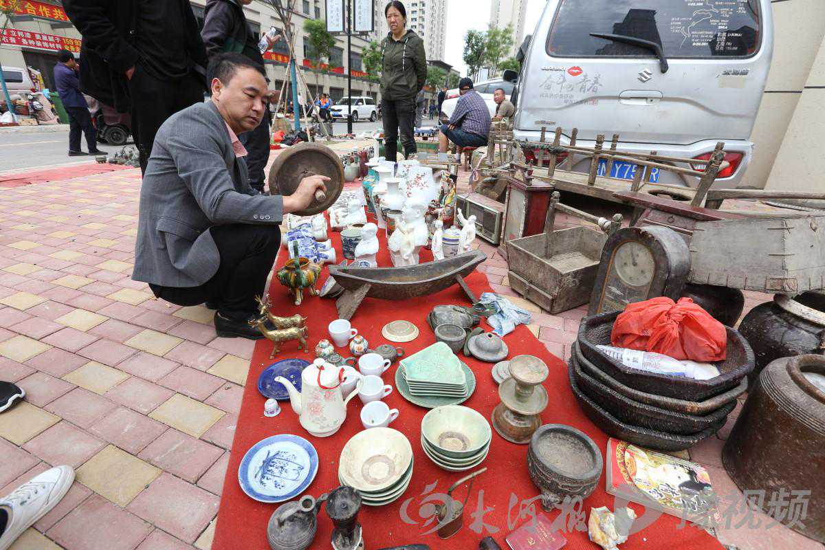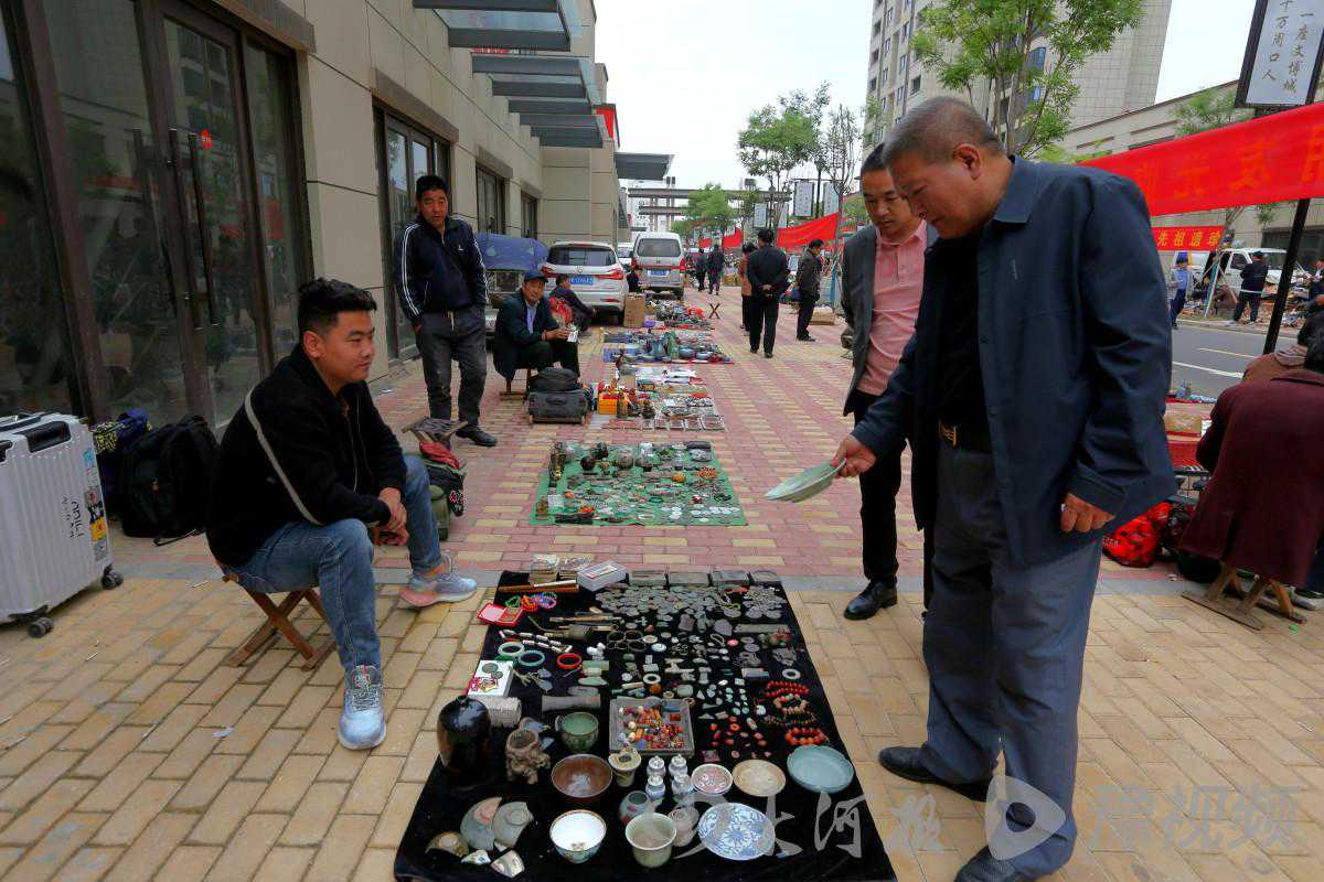 5月11日,是周口“中原文博城”首次开市,也就是对外宣传的“大型古玩藏品交流会”。来自全国各地的近千名文玩爱好者聚集到这里,亮宝、寻宝。