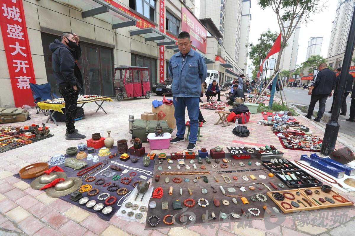 这是5月11日,位于周口市中原路“中原文博城”交流大会上的一幕。当天,来自全国各地的近千名文玩爱好者共聚于此,开启各自的寻宝之旅。
