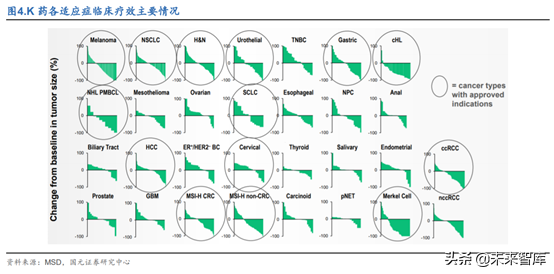 1.2.2、K药在多适应症上均表现出色,NSCLC一线获批助逆袭