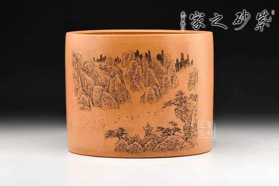 ▲「谭泉海·钟鼎山水笔筒」