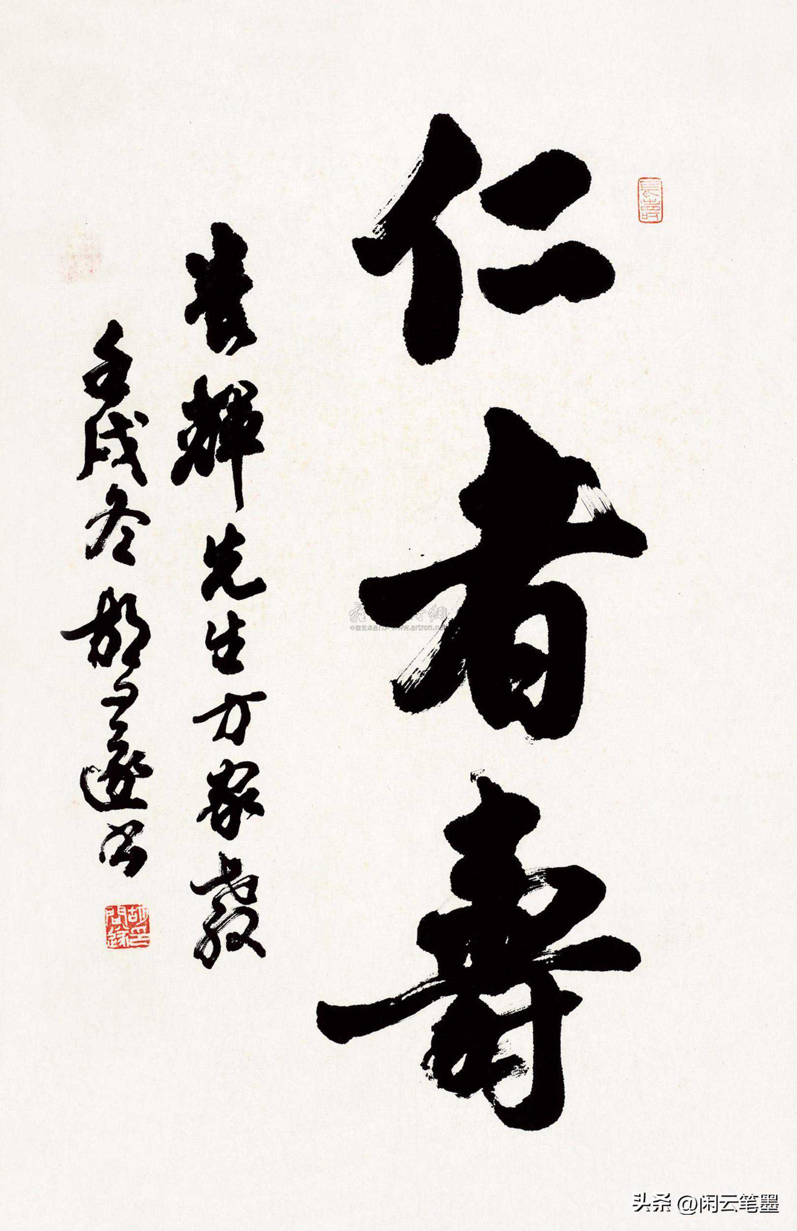 仁者寿,养生术语。谓道德崇高者,怀有仁爱之心,胸怀宽广的人容易长寿。下面请欣赏林则徐、齐白石、于右任、林散之、启功、胡问遂、李铎等名家的书法作品。
