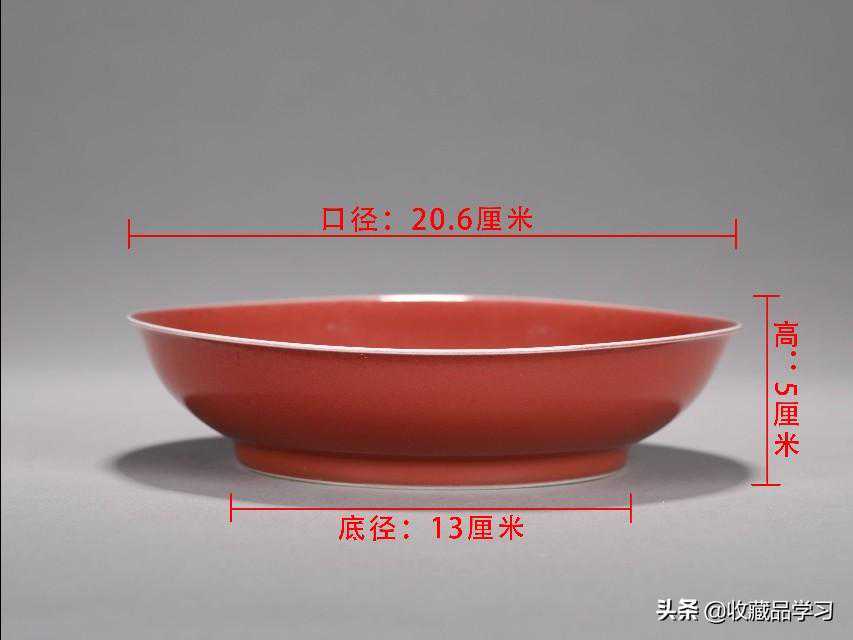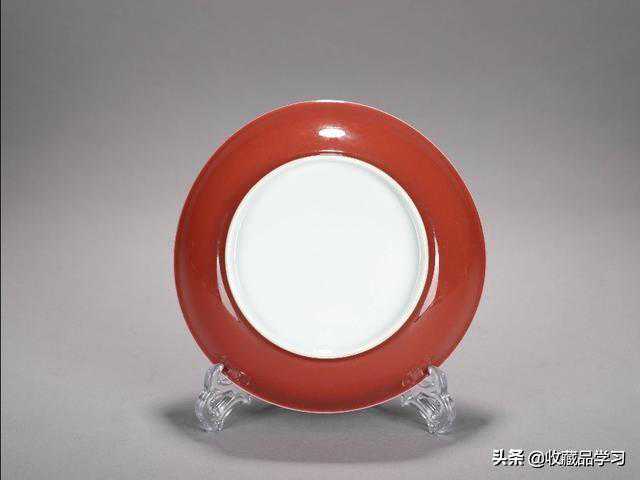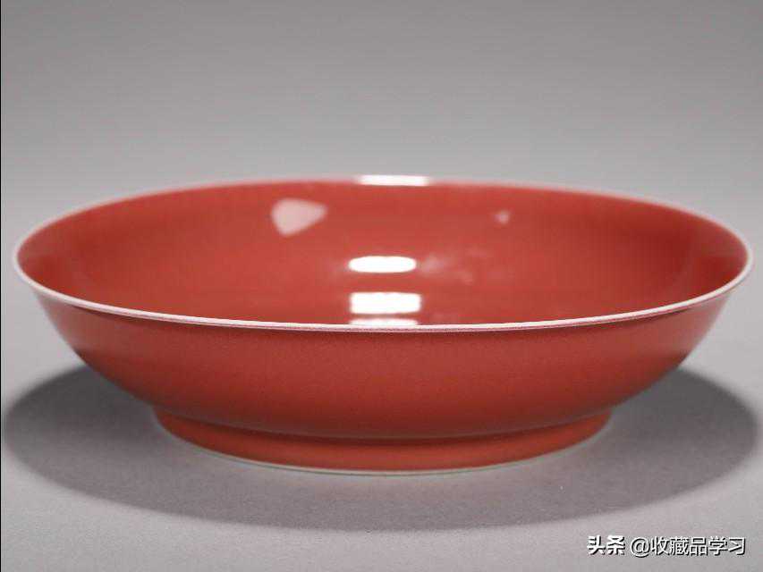 本品为清宫经典品类,终清之世皆见烧造,为每年大运瓷器必备之列。此品内外红釉,由于红釉烧造困难,双面施红釉作品少见,此盘霁红釉沉着饱满,殊为难得。