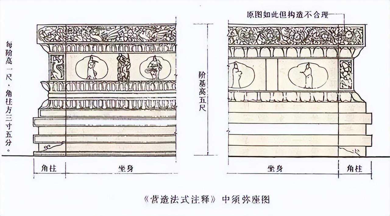 须弥座在我国出现得也极早,北魏孝文帝时开凿的云冈石窟中就有简单的须弥座,后代的须弥座为了进一步丰富装饰效果,往往加高束腰,改变造型,在叠涩上加莲瓣纹等,显得更为繁复华丽。