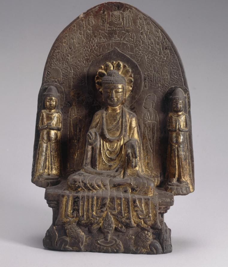 南朝梁释慧影造释迦牟尼佛漆金石像上海博物馆藏
