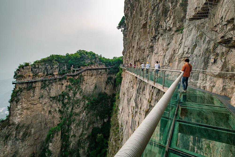 2、如果仅参观凤凰岭(玻璃栈道),进去验票口右手边,玻璃栈道,路程全长2千米,原路去原路返回,游览时间为2个小时。