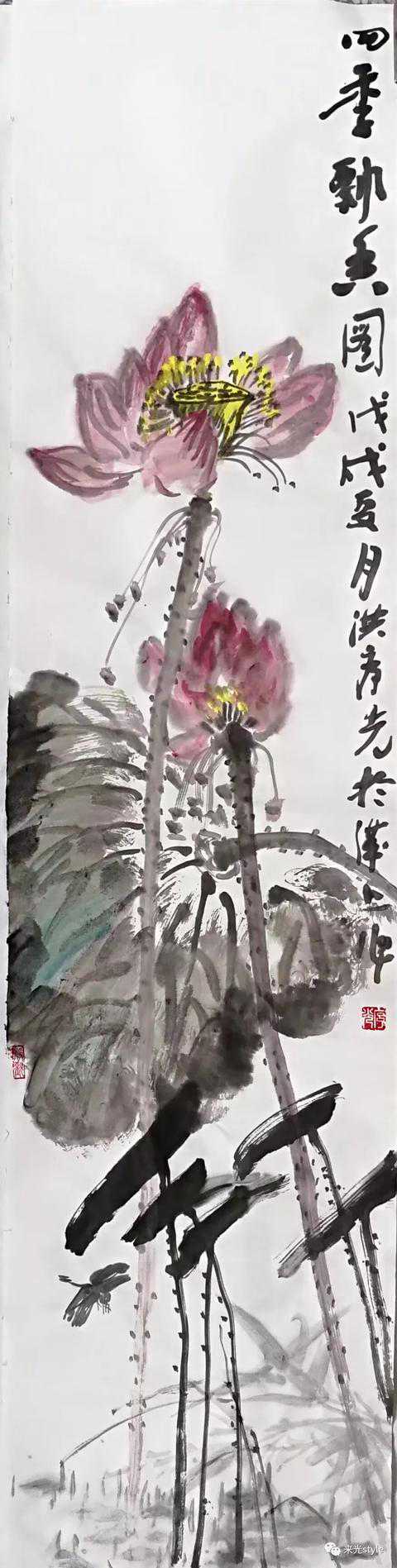 第一,中国传统画时期。包括临摹古代工笔花鸟人物,书法,形成自己的传统写意风格,现主攻彩荷与墨竹,画面构图讲究,不拘一格,笔墨严谨洒脱,在前人的基础上有新的突破。