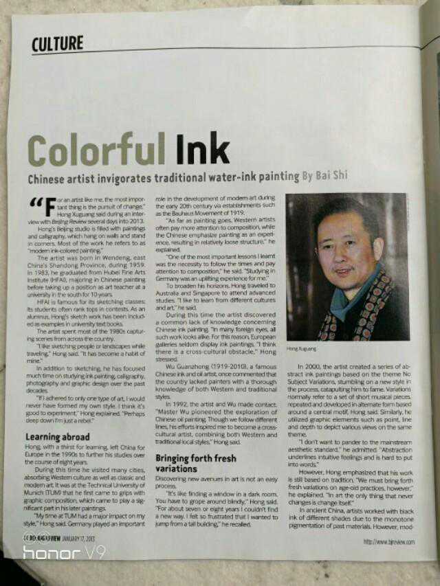 北京周刊(英语全球发行)专题介绍彩墨画家洪序光。