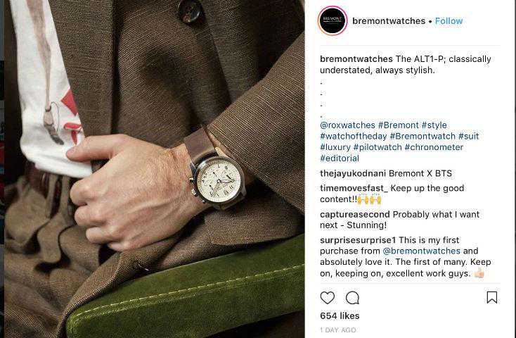 在下面的例子中,Bremont就做得很好。他们使用watchoftheday这样的标签吸引目标受众。