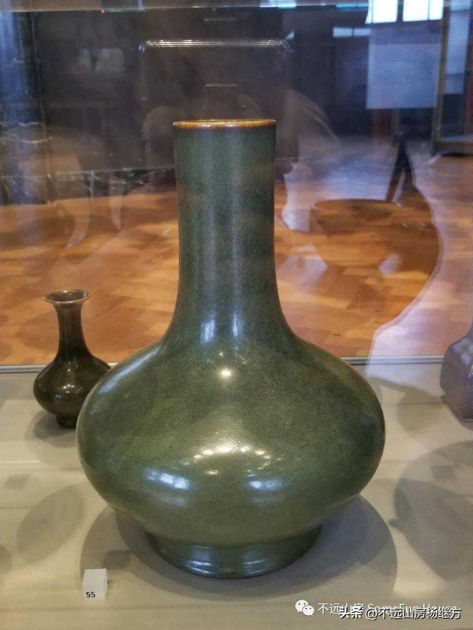 英国VA博物馆藏雍正绿釉柳叶瓶茶叶末釉蒜头瓶炉钧釉敞口瓶