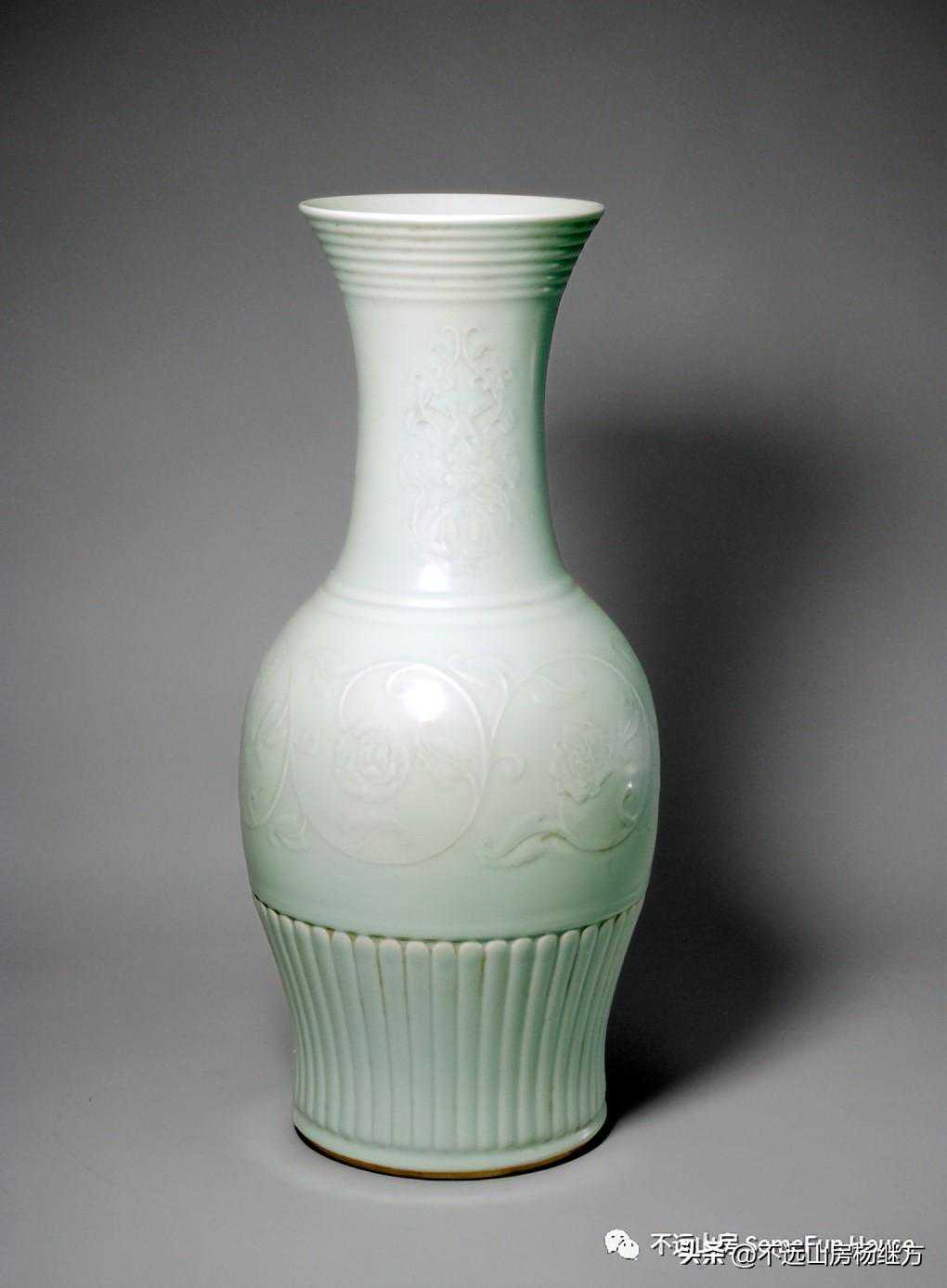 故宫博物院藏清雍正冬青釉暗花缠枝莲纹撇口瓶