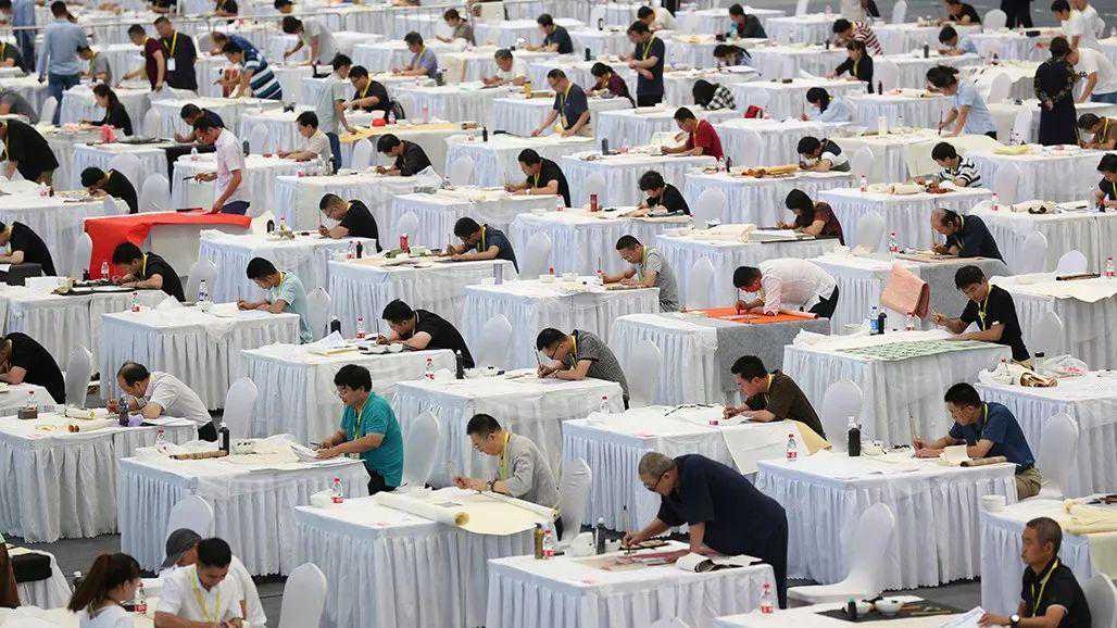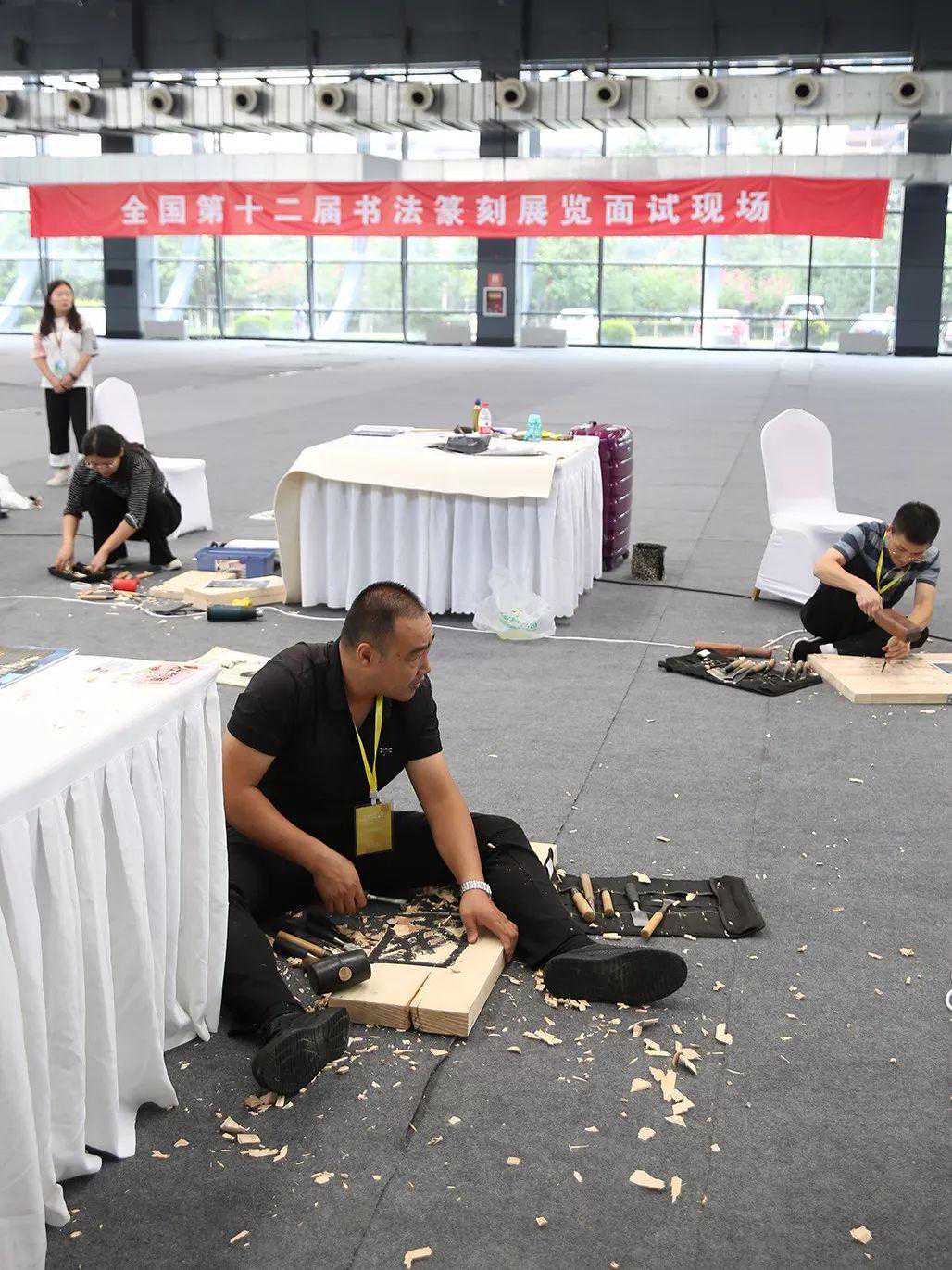 8月31日面试考核分上午、下午和晚上三场,在宝鸡会展中心进行。上午面试篆书、隶书、行书、刻字(刻字全天),下午面试楷书、草书和篆刻,晚上面试入围三书体的作者。按照面试考查既定流程和考场纪律,八百余名入围作者井然有序地参加了面试考查,现场测试工作圆满完成。