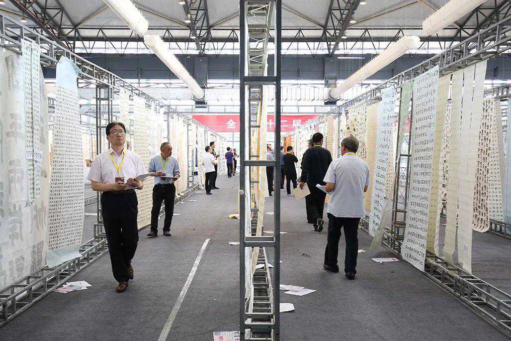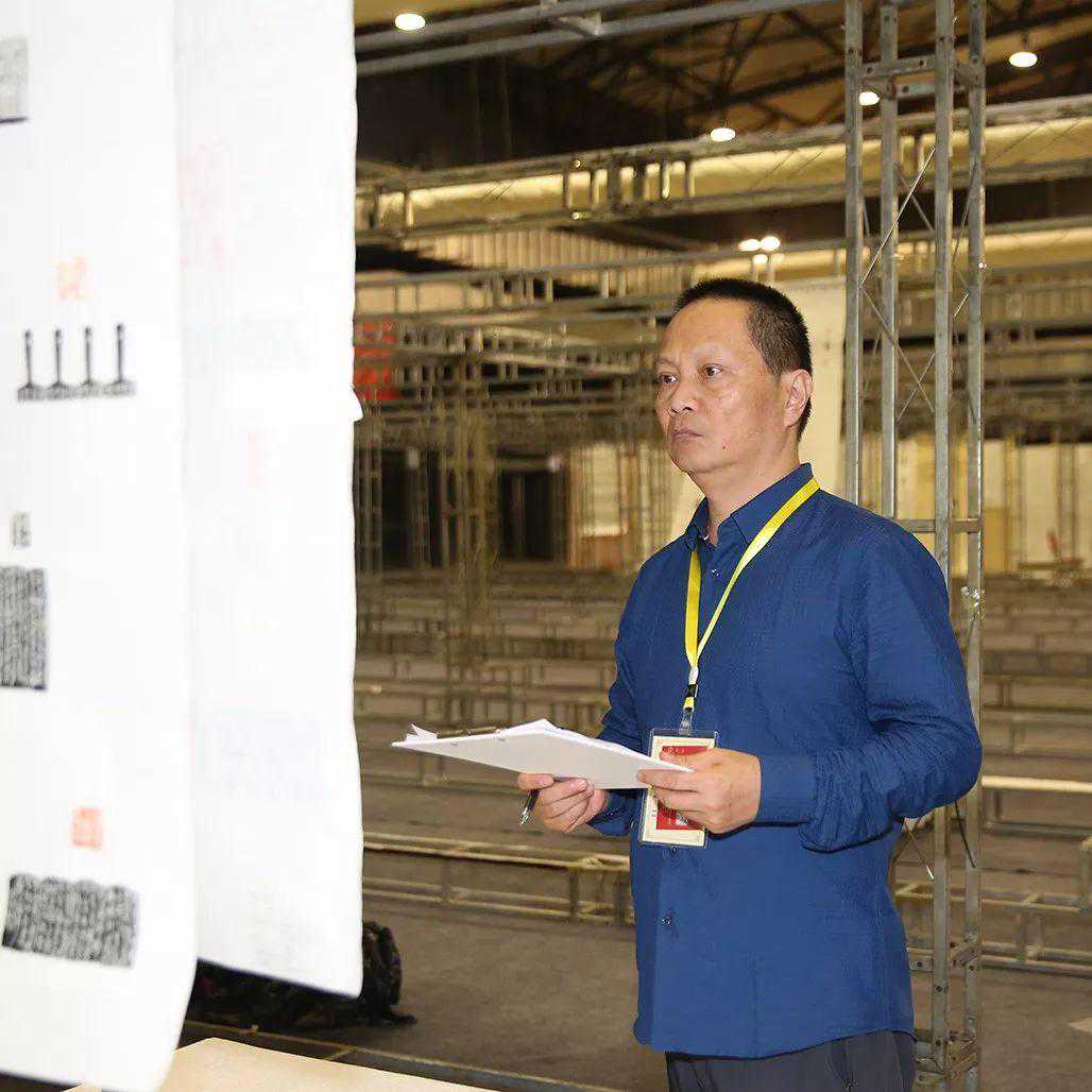 8月31日晚开始,至9月1日晚结束,抽查面试评审分篆书、篆刻、刻字、行书、草书、楷书、隶书7场进行。投稿入围作品和现场书写作品全部集中悬挂,面试评委会全体评委在监审委员的全程监督下,对面试现场书写作品进行了认真评审。