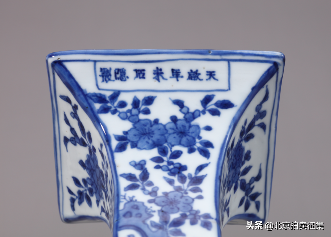 嘉靖、万历时期青花,青花发色浓翠泛紫,恰与永、宣二朝青花器相类,故不乏有众多仿前朝永、宣青花风格器物在仿官器物上出现。这一特殊品种现象,也反映了这一时期瓷器造型、纹饰和绘图技法的多样性。