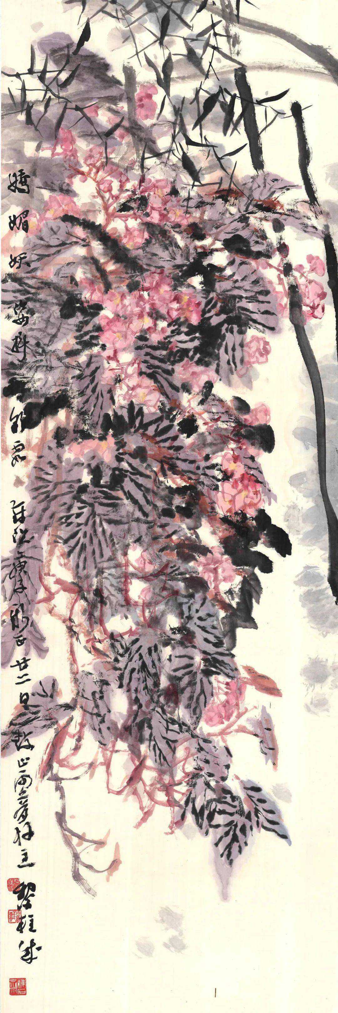 黎柱成的画具有浓烈的岭南特色,纵横均匀带来扑面而来的气息,尤其是他的传统程式和新题材的把握,处理的非常好,他的花鸟画的题材很多,包括海棠、牡丹、木棉都非常有特点。这些传统的题材又是非常难创新的题材,他用自己独特的表达方式呈现出来,是非常难得的。