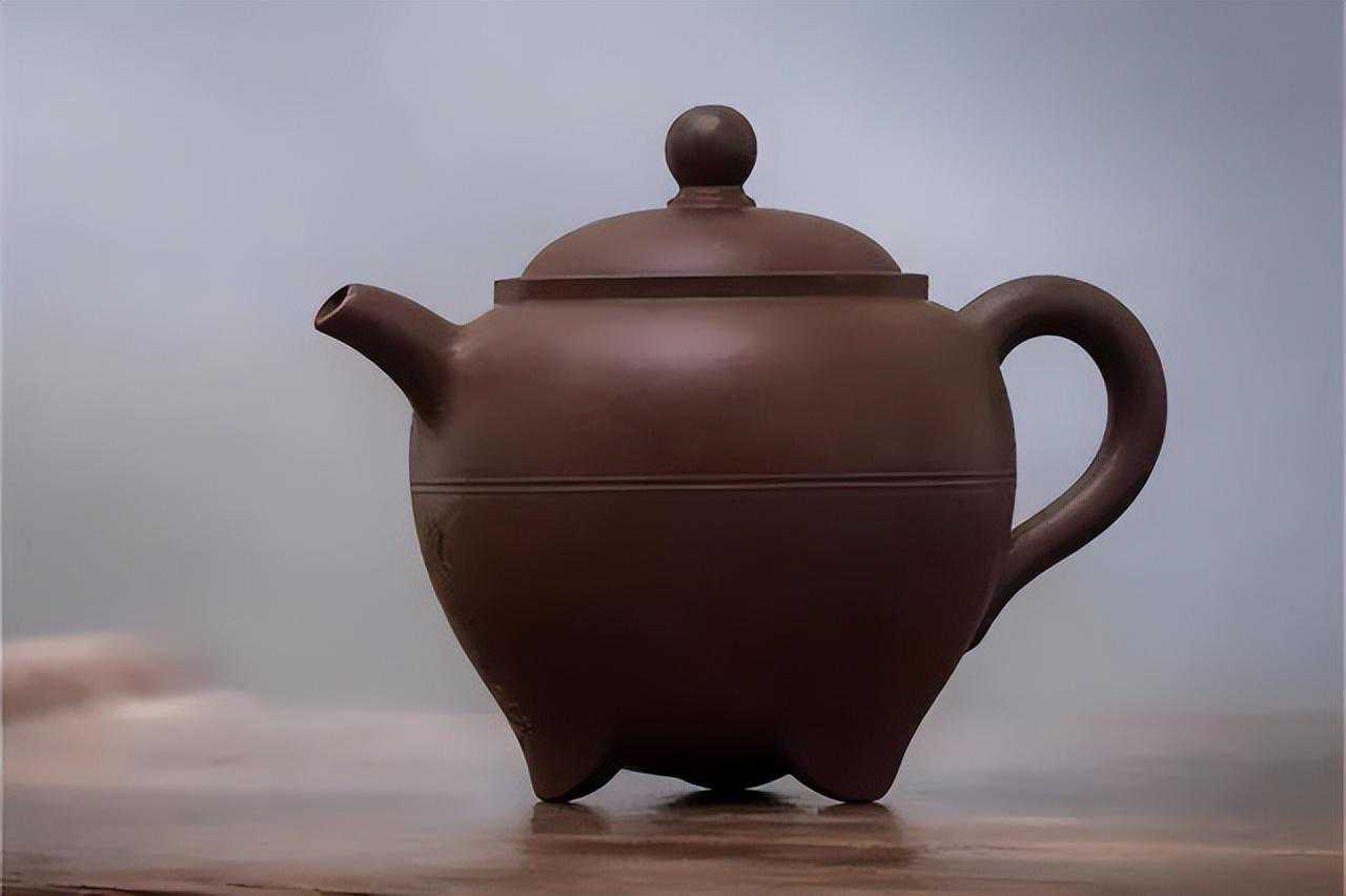 清代制壶大师陈鸣所制的这把《三足壶》,泥质细腻,色泽温润,身桶饱满,气韵十足,完全脱离了明代粗糙的土砂气,代表了康熙朝紫砂制作的最高水平。