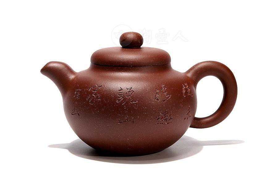 此款《题诗壶》壶身浑圆比例精准,壶正面腹部刻行书“挹彼甘泉,清泠注兹;先春露芽,一枪一旗;烹以兽炭,活火为宜;素瓯作配,斟斯酌斯”。