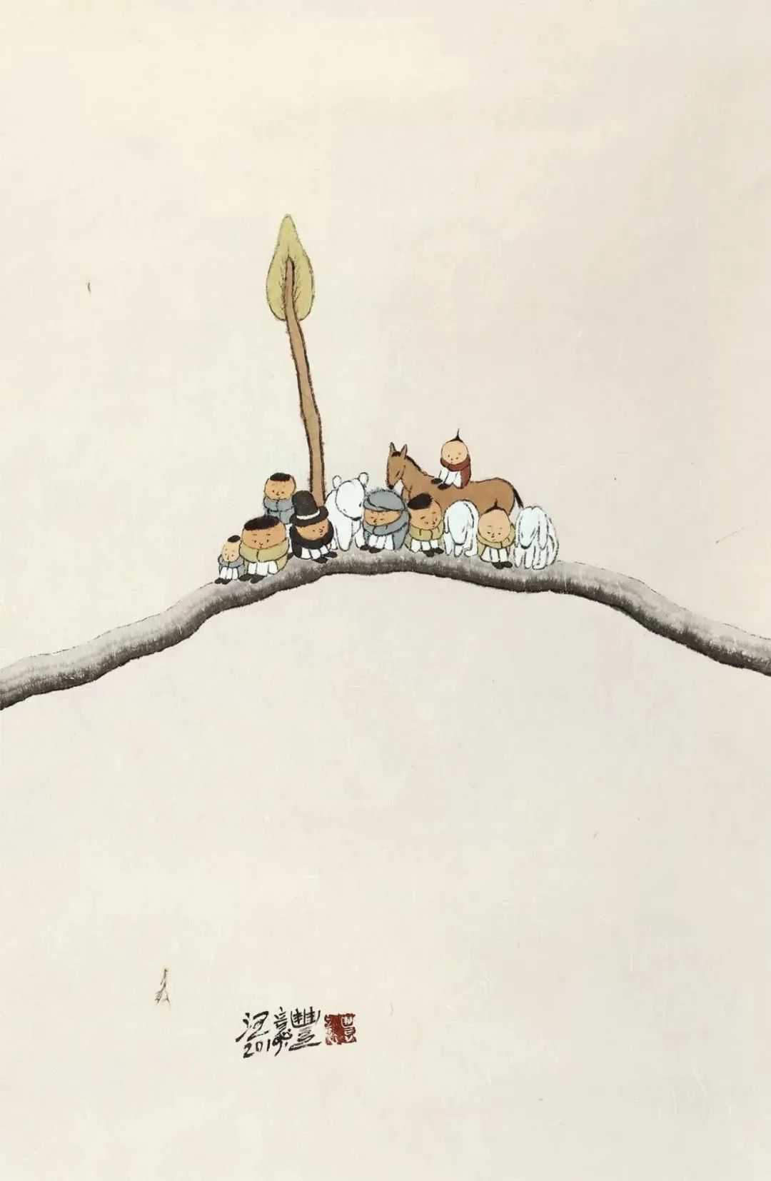 “风格即人”,这说法源于十八世纪法国作家布封,他认为作品的风格即为作家的思想、情感等,四个字阐述了作品的风格与作家的紧密联系。看到汪意丰的画,或许你会感觉到拙朴、文人气,还有童趣。这童趣正来自于他内心深处的那个少年。