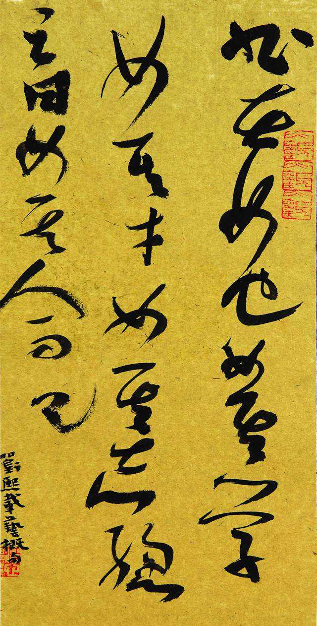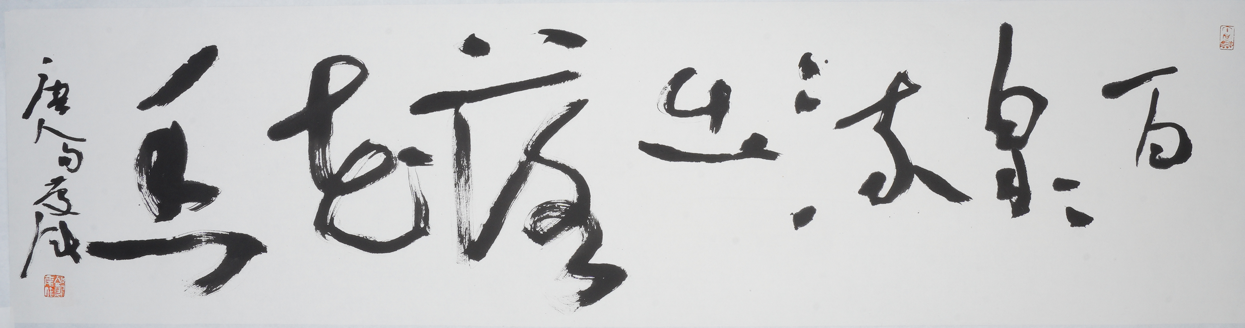 草书的关键在结字和线条,先生的结字新奇险崛,是造险的高手,虽异于草书诸贤,但我们仍能感受到一种秩序之美,和谐之美。线条的变化非常自然,表现力大为丰富;始终流贯着一种鲜活的生命之气。其书法作品笔法灵动多变,线条拙朴而流畅,充分体现了他对中国传统文化的深刻理解和对时代审美取向的准确把握。他的行草书,不仅充分反映了他的睿智与才情,更是他精神性情的自然流露和真实写照。