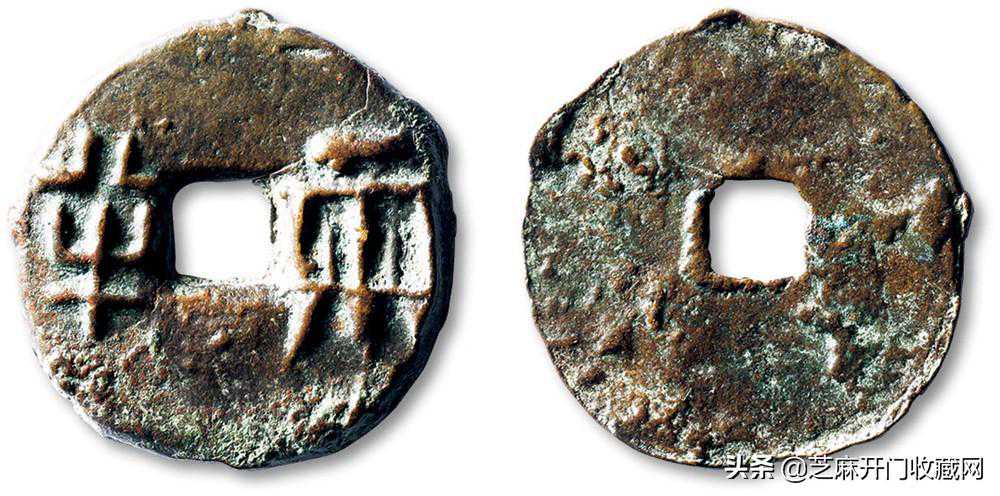 先秦半两的直径比较大,钱体也很厚,面文是半两,大小不一样。半下横与两的上横都比较短,两字中的从基本都是长人两。