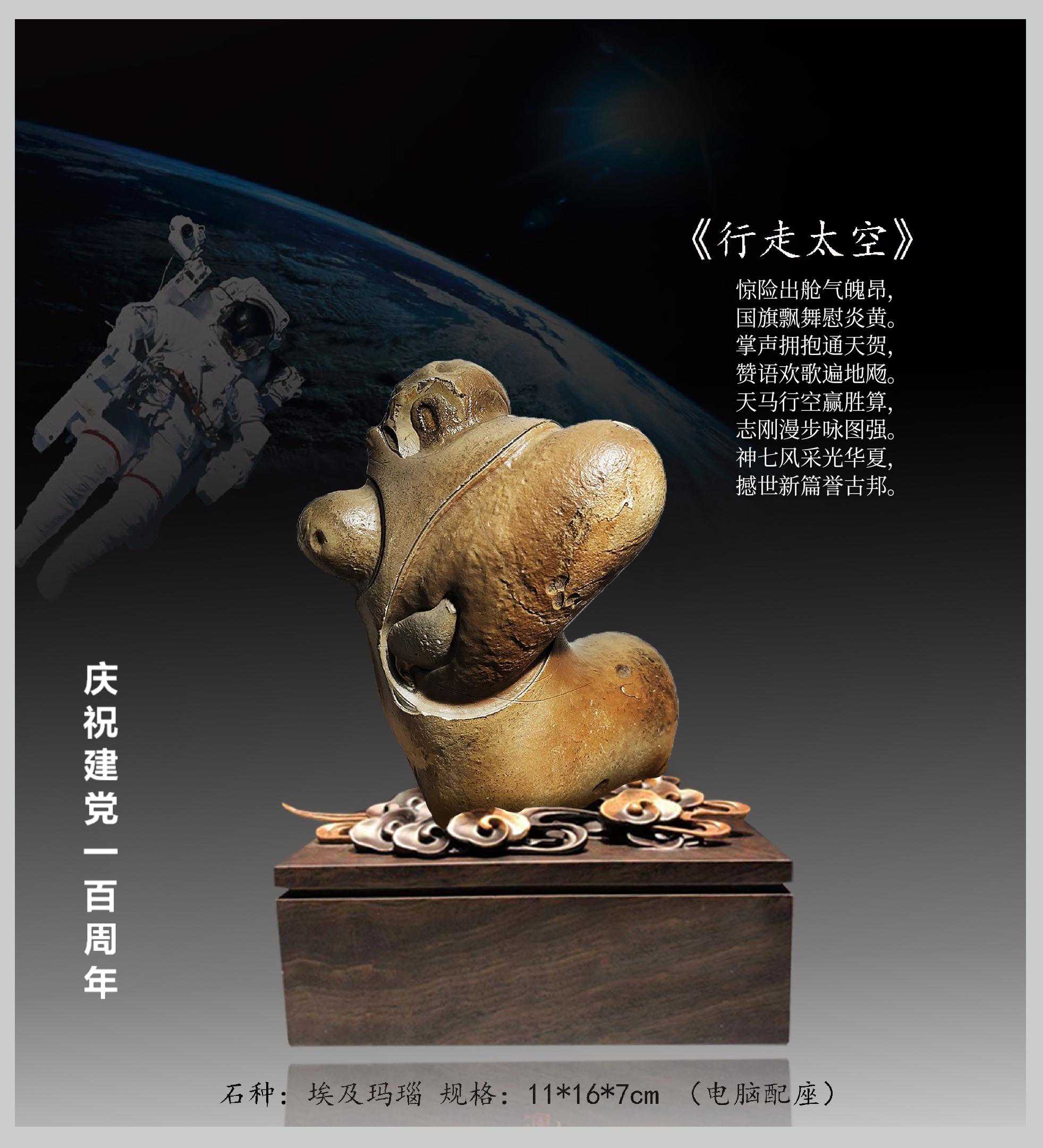 20年前,老刘又与奇石结缘,成为中石协创会时的初始会员,老刘收藏石头不计较石种,只要美,只要观赏主题自然天成、稀缺,形成难度大,能读出文化,品出故事,价高点也行,只要拿得动一定拿下,如果买不到手就会吃不香,睡不着。一次在洛阳石展上看到一方清江石,价高缺银子,就同卖方朋友协商,可否暂欠一部分,卖方欣然同意。石头拉回老家后,老刘立马带上早年收藏的纪念金币,急奔北京马甸市场转让还款。第二年还是在洛阳石展上,他又看上了一方大块清江画面石,后命名《群仙赴会》,因色彩、纹路都非常奇绝,寓意也好,可遇而不可求,但还是缺钱,没办法,老刘只好在石展上直接往美国打电话,让在美国斯坦福大学读研的儿子把他在学校贷的学费打10万过来,儿子说不买不行吗?老刘说全世界就此一方,我想买,错过了就再难遇上,钱以后可以再赚,同样的石头再找不来。儿子很孝顺立马给打了5万过来,老刘终于得偿所愿,满载而归。但后来老刘还是有点难受:为了自己的爱好不顾孩子的学习,我是不是有点太自私了。