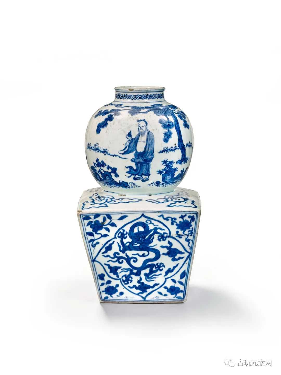 |明嘉靖·青花人物云龙纹葫芦方瓶|