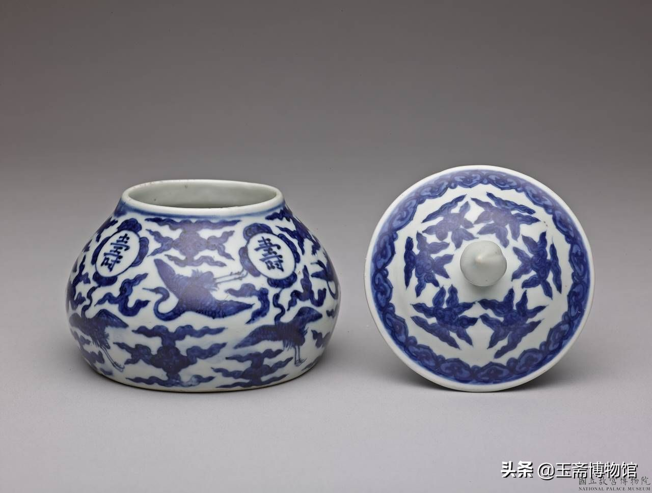 明嘉靖青花云鹤寿字盖罐台北故宫博物院藏