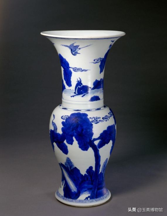 清康熙青花鹤鹿盘同春图凤尾尊