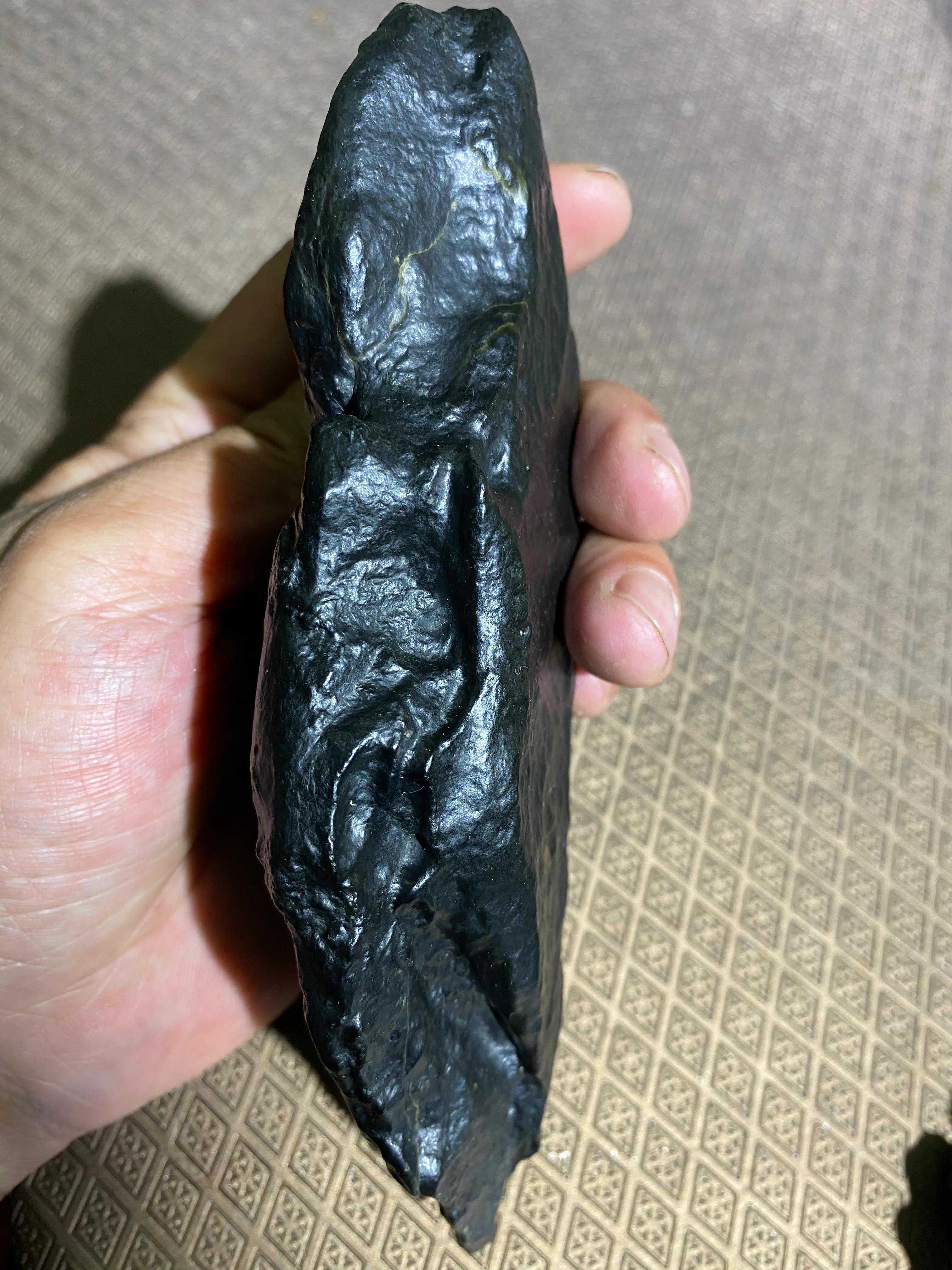 玉石其实就是一种石头,大自然里一种文化底蕴深厚的石头、特殊石头;成份、结构、密度、硬度、光折射率等符合国家质量监督所严格要求的一种石头。所以是不是玉石最终都是以国家鉴定机构规定的标准来定论,因为很多的石种它外观特别像玉,但实则不是玉。墨玉也是一样的,官方鉴定结果是墨玉它必然是墨玉。墨玉一词来自官方语,墨玉大灯必须的找到透光的地方,如果一点都不透光说明它缺少透闪石成份,国家鉴定机构就鉴定不出和田玉,自然也就不是墨玉了。墨玉和透什么光没有关系,但必须的透边缘光。黑度够的和田玉黑青玉和黑碧玉是民间叫法,官方没有黑青玉、黑碧玉一说,如果要鉴定、结果为墨玉。墨玉是指和田玉所含石墨、和和田玉黑度达到国家标准要求就是墨玉。当然墨玉一样有等级高低之分,越黑越好,所谓黑如碳、无敌黑;肉越细越好,所谓一细、无光圈。很多人说:最好的墨玉根本就不透光,这是对墨玉认知浅薄的表现,是对墨玉的错误臆想。