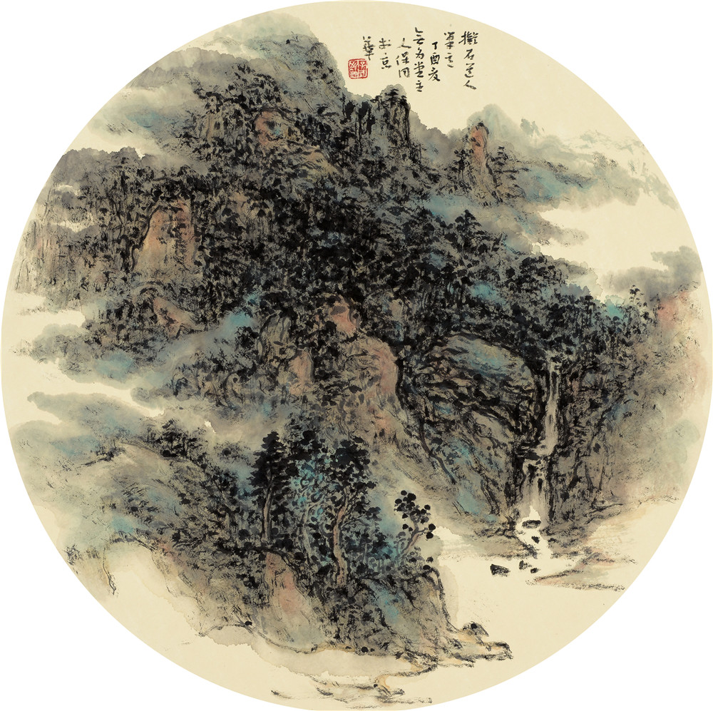 髡残的画,笔墨高古苍莽,绝无世俗气,用笔苍劲老辣,气势夺人如龙行空、虎踞岩,无任何功利之心,真正达到了“点画无奇但率真”。他的画无论是浓焦墨还是淡干墨,无论是实实在在的长线,还是时断时续,虚虚掩掩的渴笔短线,无论是屋舍人物的勾勒,还是提醒收拾的点苔,甚至皴擦勾染中都是踏实的中锋用笔,他的线内敛含蓄,柔中带刚,重提按,讲节奏,很慢、很毛、很厚、很拙、很圆,充满了坚实厚重,生辣幽雅,斑驳,宁静而又空灵的金石味道,有移山扛鼎之力。这一方面得力于他师造化常住在南京牛首山一带写生的地貌有关,另一方面源于他长期的参禅悟道和对书法金石篆刻的研究和领悟。