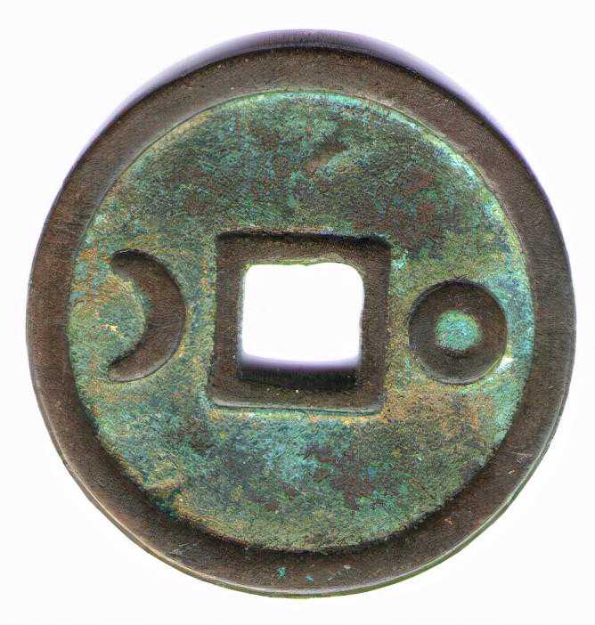 我的咸雍通宝小平背日月,径26毫米,厚2.4毫米,重8.6克。