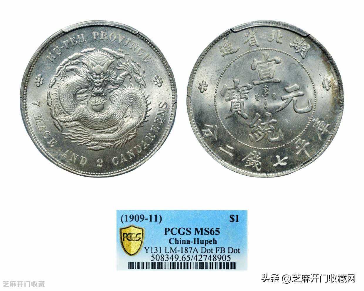 1:湖北省造宣统元宝七钱二分普通PCGSMS65,估价:RMB100000,成交价格:RMB805000