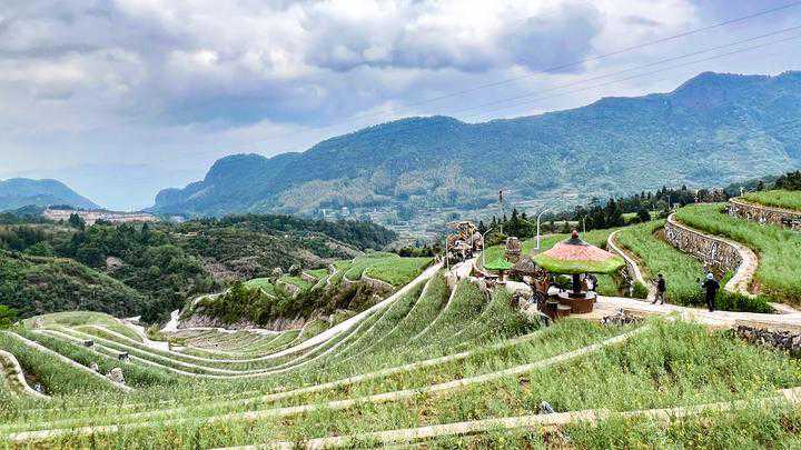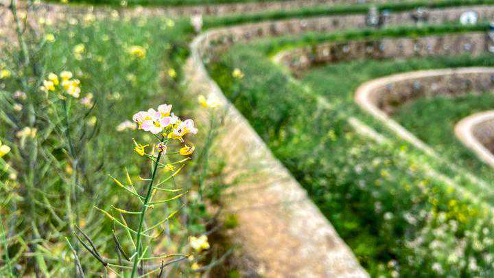 这是一片解决耕地抛荒问题,结合上古文化而打造的梯田景区,据说这里一年四季都有不同的农作物,春天是五彩油菜花,夏天是绿色的稻田,秋天是金色的稻田,想想都好唯美。最特别的是每一丘农田的挡土墙上都刻画着一个个大小不一,形象各异的头像、花盆等装饰,仿佛闯入了一片上古圣地。