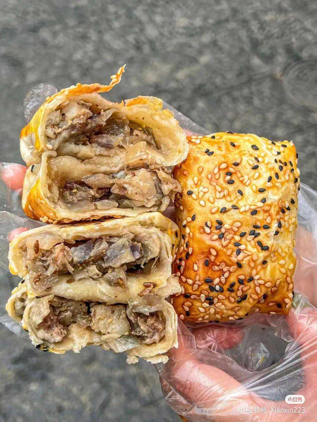 当酥脆的面皮遇上满满的牛肉/羊肉。丰盈油亮的外表闪耀着黄澄澄的外光。轻轻掰开一个,肉香混着孜然香气,同着热气一起冲撞到鼻腔,勾人心魄。
