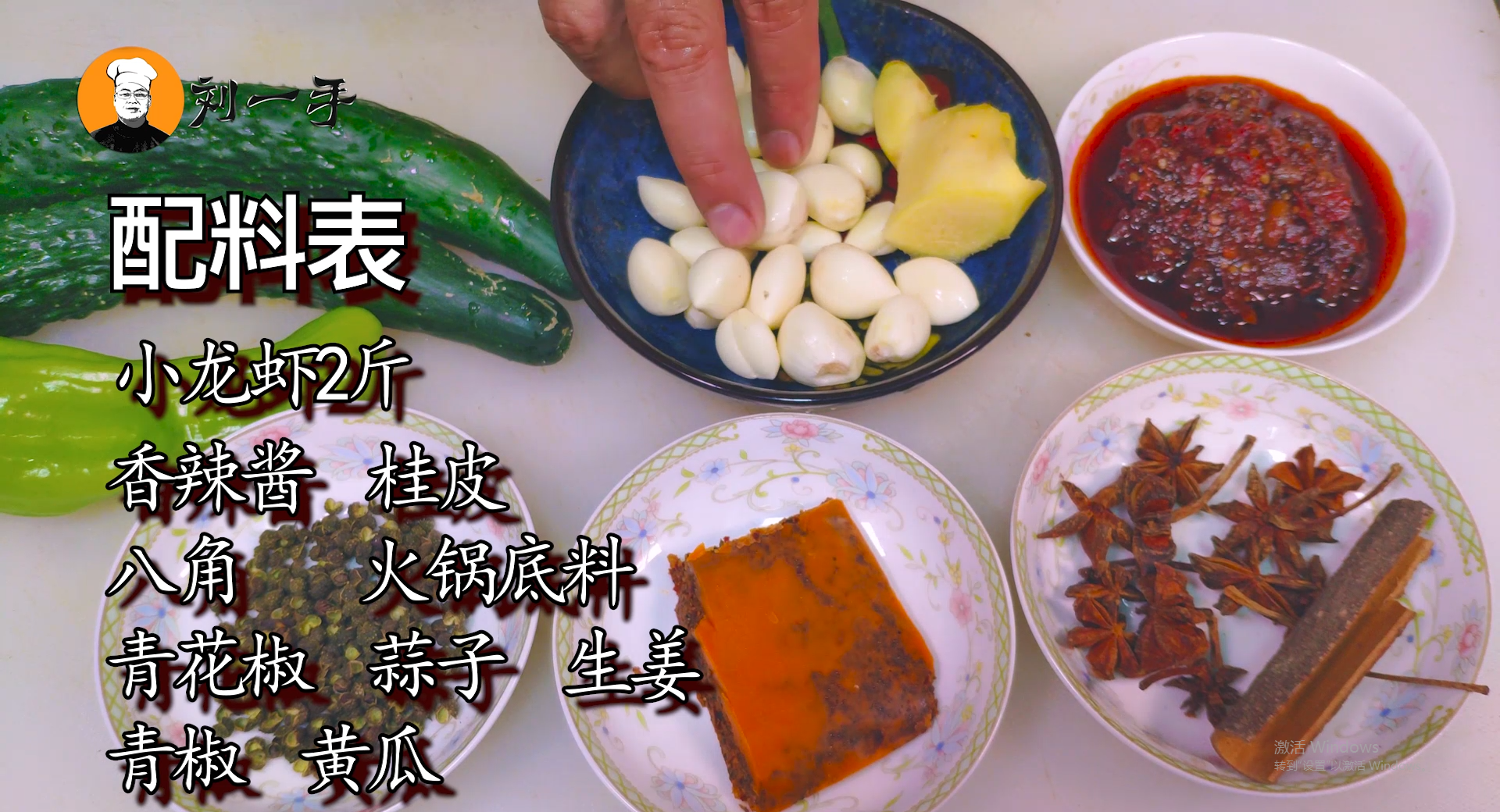 小龙虾2斤、香辣酱、桂皮、八角、火锅底料、青花椒、蒜子、生姜、青椒、黄瓜