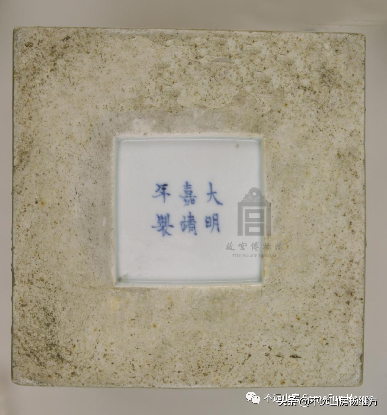 故宫博物院藏清康熙青花山水人物图方瓶“大明嘉靖年制”款