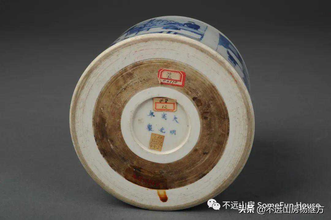 济南博物馆藏清康熙青花开光人物纹卷筒