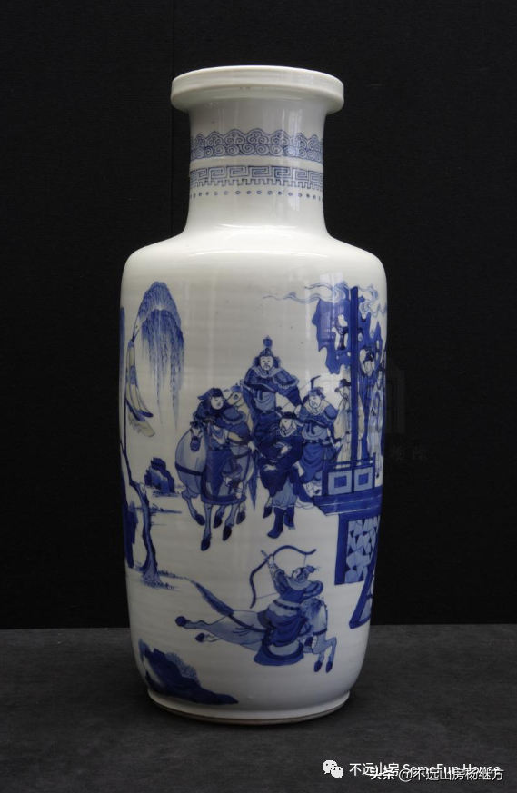 北京保利2011秋的圣路易斯博物馆旧藏的康熙青花刀马人物纹棒槌瓶,高76厘米