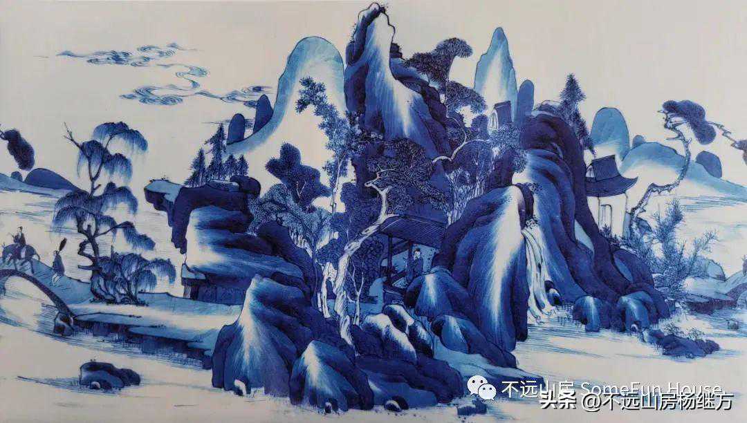 康熙青花的早、中、晚三期色调差异很大,其变化的过程基本是循着灰暗-明快-灰暗的步调发展,巅峰时期应是康熙中期。这个时期制瓷工匠已经熟练地掌握了青料的配置方法,烧制出了闻名于世的“五彩青花”,即仅用一种青料便可渲染出景物的疏密远近,阴阳向背,使画面极具立体感,达到了中国画特有的“青(墨)分五色”的效果。又由于其色泽亮丽,所以又将其称为“翠毛蓝”和“宝石蓝”。