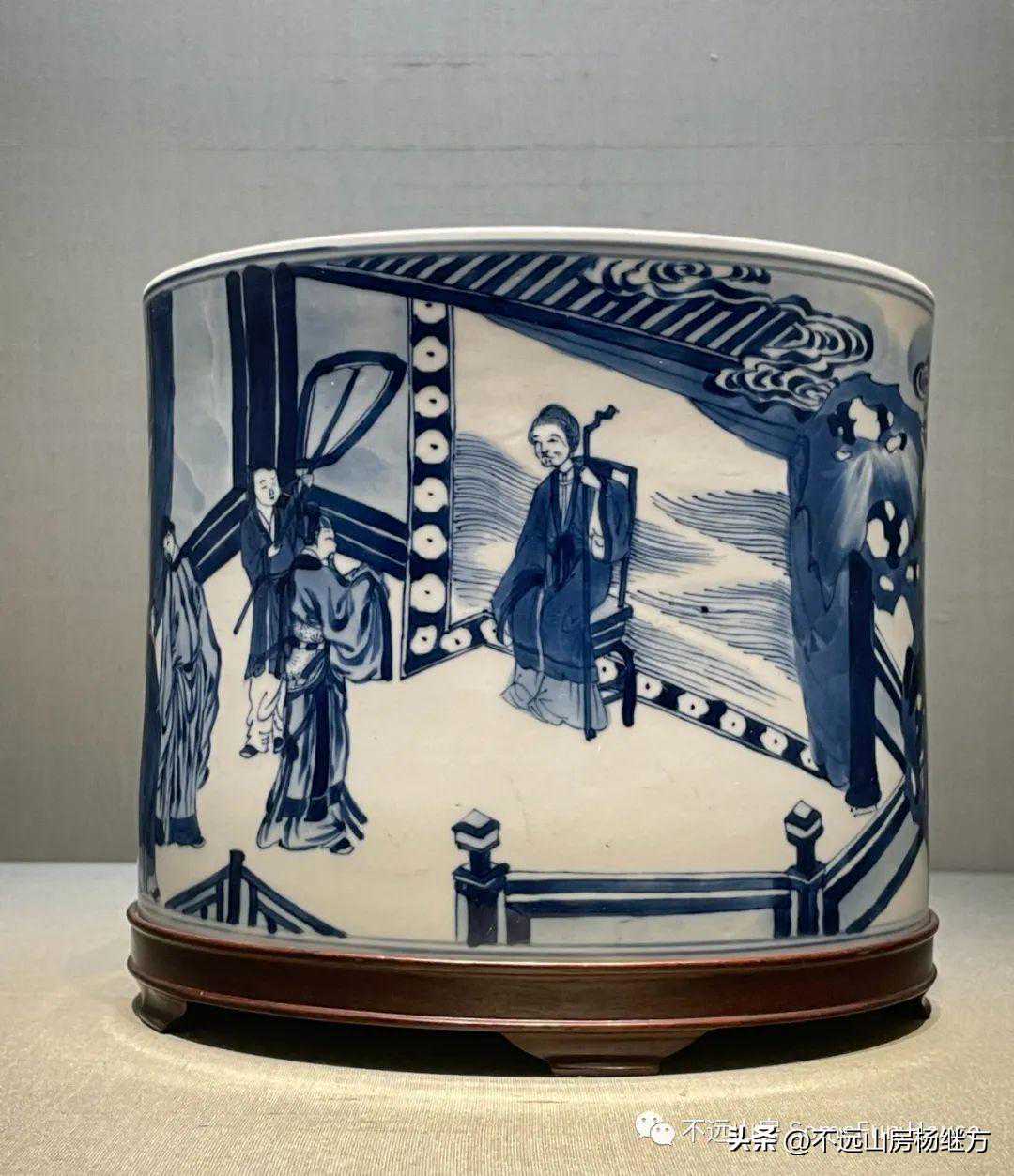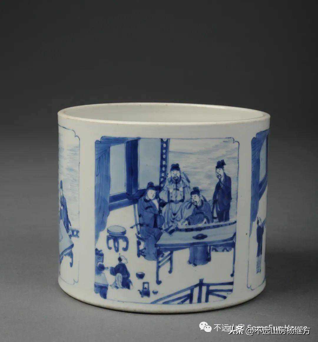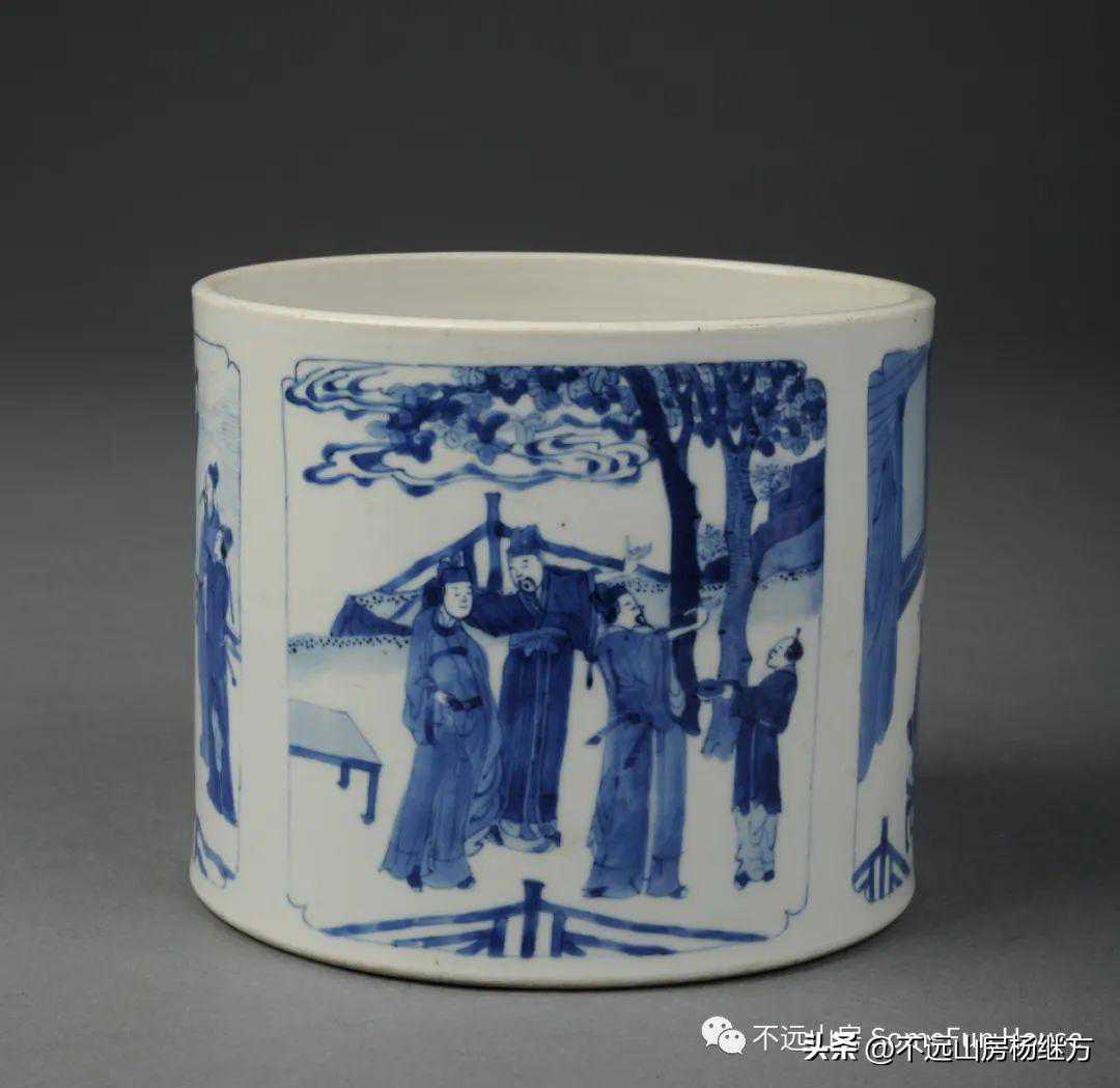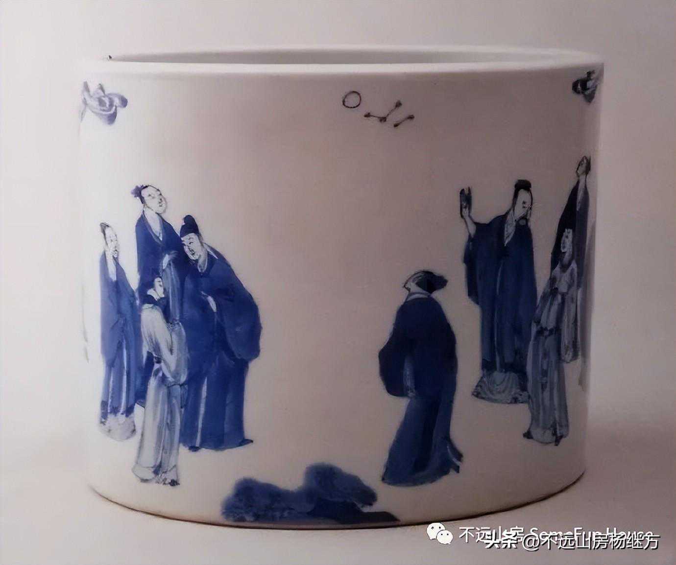 上海博物馆藏康熙官窑青花高士人物图笔筒