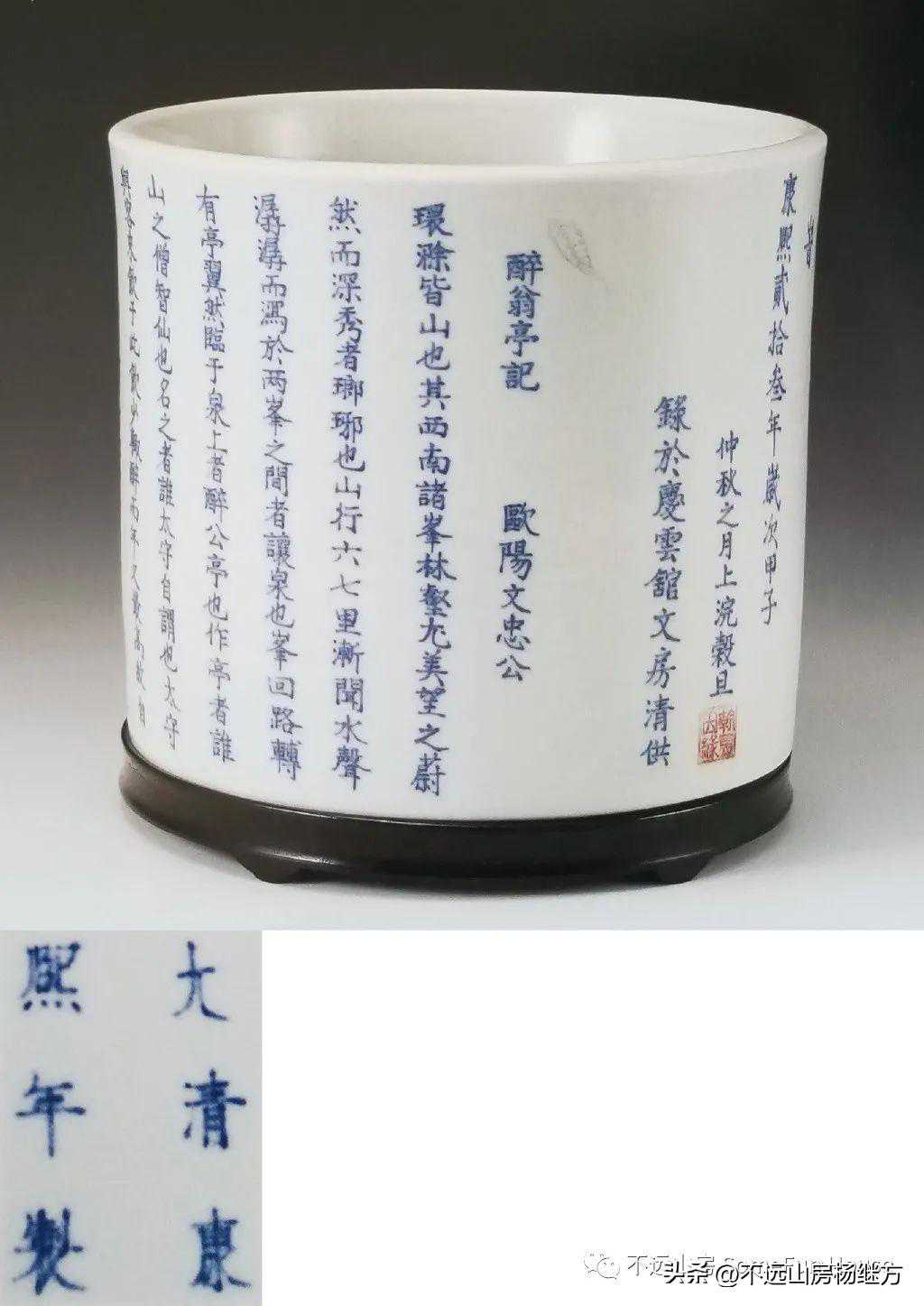 北京翰海2003春的康熙青花醉翁亭记笔筒,有官窑款