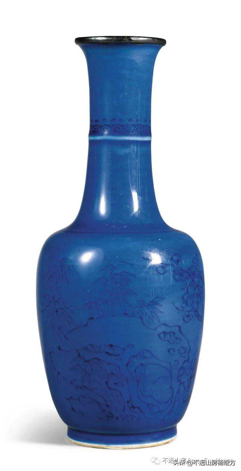 巴黎佳士得2020春的康熙洒蓝釉青花福禄寿三星图棒槌瓶